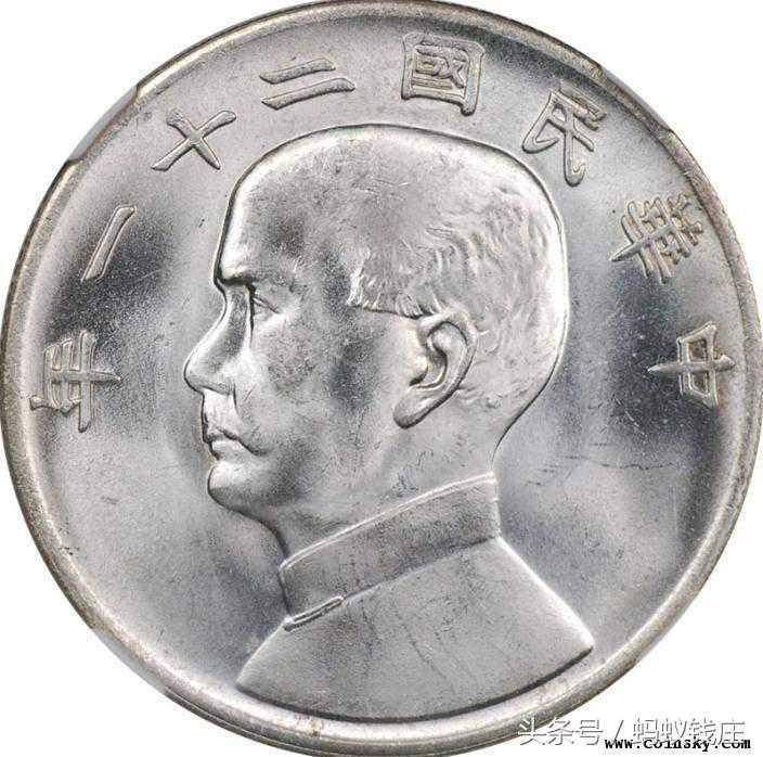 1、正面“民国二十一年”的“一”字写法两端浑圆,苍劲有力,常见仿品“一”字两端尖锐,改刻币一横的长度较短,周围包浆异常,不自然。