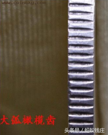 5、三鸟的边齿是很有代表性,很容易辨认的,首先,它必须是大弧橄榄齿,齿和齿之间距离排列较远,同时它还有另一个特征就是齿沟一头宽一头窄,整体看上去很圆润,线条流畅。如果用二十二年或二十三年改刻的三鸟币就不具备一头宽一头窄的特征。常见仿品是小弧橄榄齿,排列紧密,而且两头一样宽。如果看见只齿三鸟,直接打入冷宫。