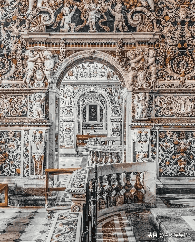 西西里岛首府巴勒莫ChiesadelGesù教堂的内部。它由耶稣会士于1590年至1636年建造