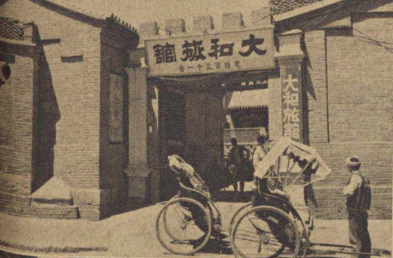 一辆黄包车停在旅店门前,不知是刚将客人送至落脚之地还是正在等待即将踏上旅程的行人。