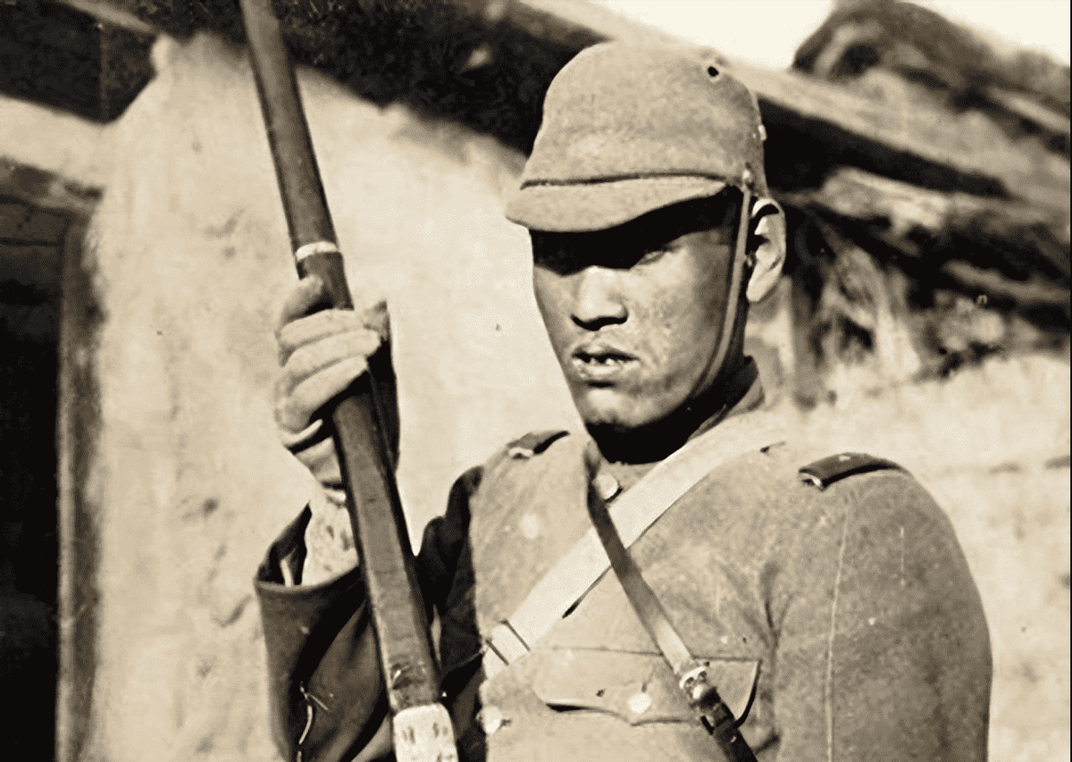 一位七尺男儿,身穿破衣,但是眼神坚定