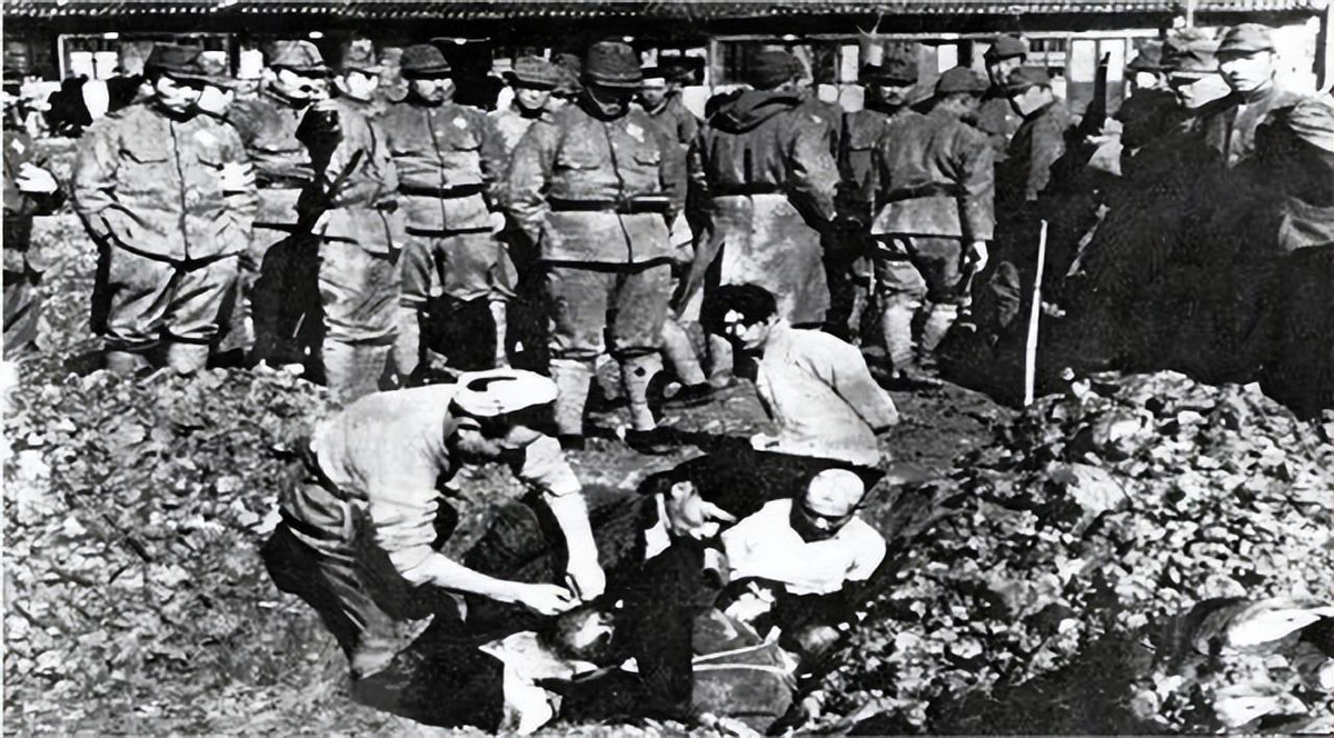 照片里是日军占领南京之后,日军让当地百姓挖好坑,然后将抓来的男人活埋进坑内。