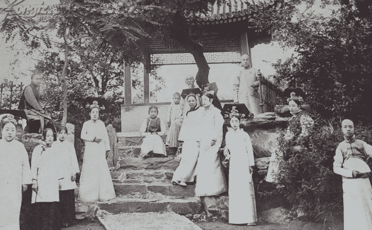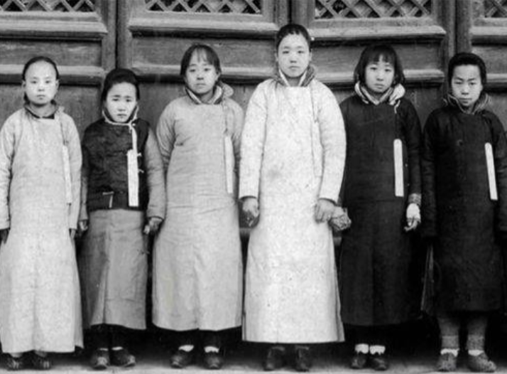 图为晚清皇宫里的两名宫女穿着宫女服饰出宫办事