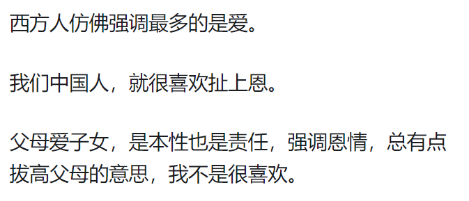 陪伴、关爱是恩,作为纯粹的供养者,没有恩。很多人养了一辈子子女,付出了时间精力钱财,但没有深入内心的情感交流,子女对他们其实是没有感情的。
