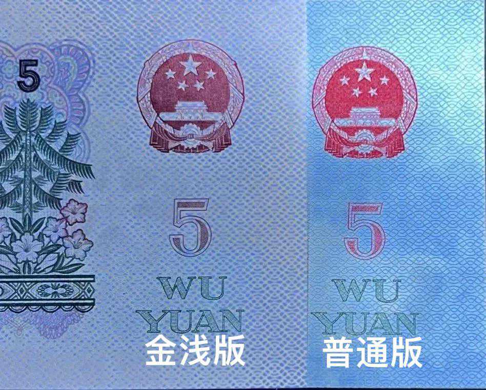 三罗马浅版5元炼钢再细分强荧光“金浅版”,金浅版自观察统计是上海印钞厂的实验品,印刷时间非常短,从纸币封单面流水号看到仅有10个月的印刷时间。三版枣红一角、背绿水印一角都印刷了3-5年时间,可以判断,存世量非常稀少。预计存量在10000枚金浅版5元荧光币。