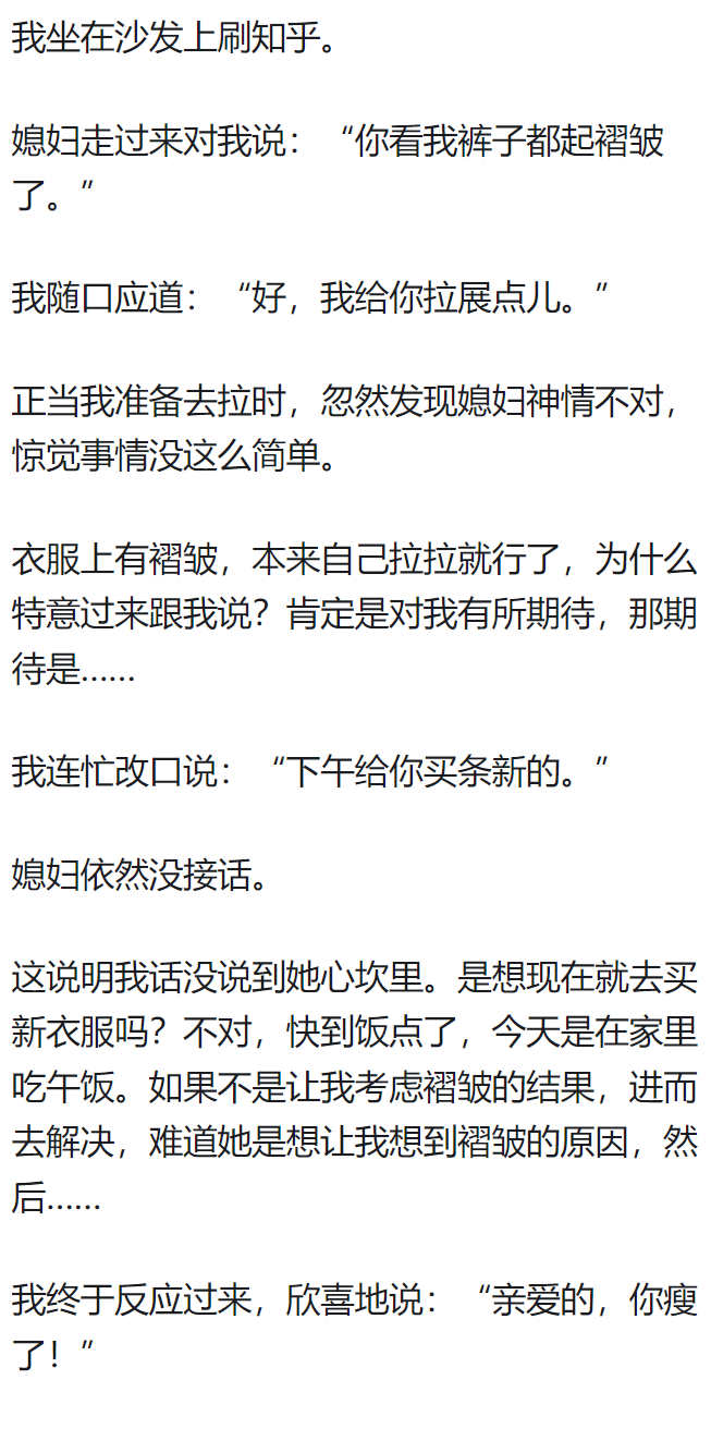 这看来是平时搓板跪的多总结出来的血的经验啊我能说看到开头就想到“你瘦了”的答案么,没有什么是“你瘦了”解决不了的矛盾,如果有,就是“买买买”。