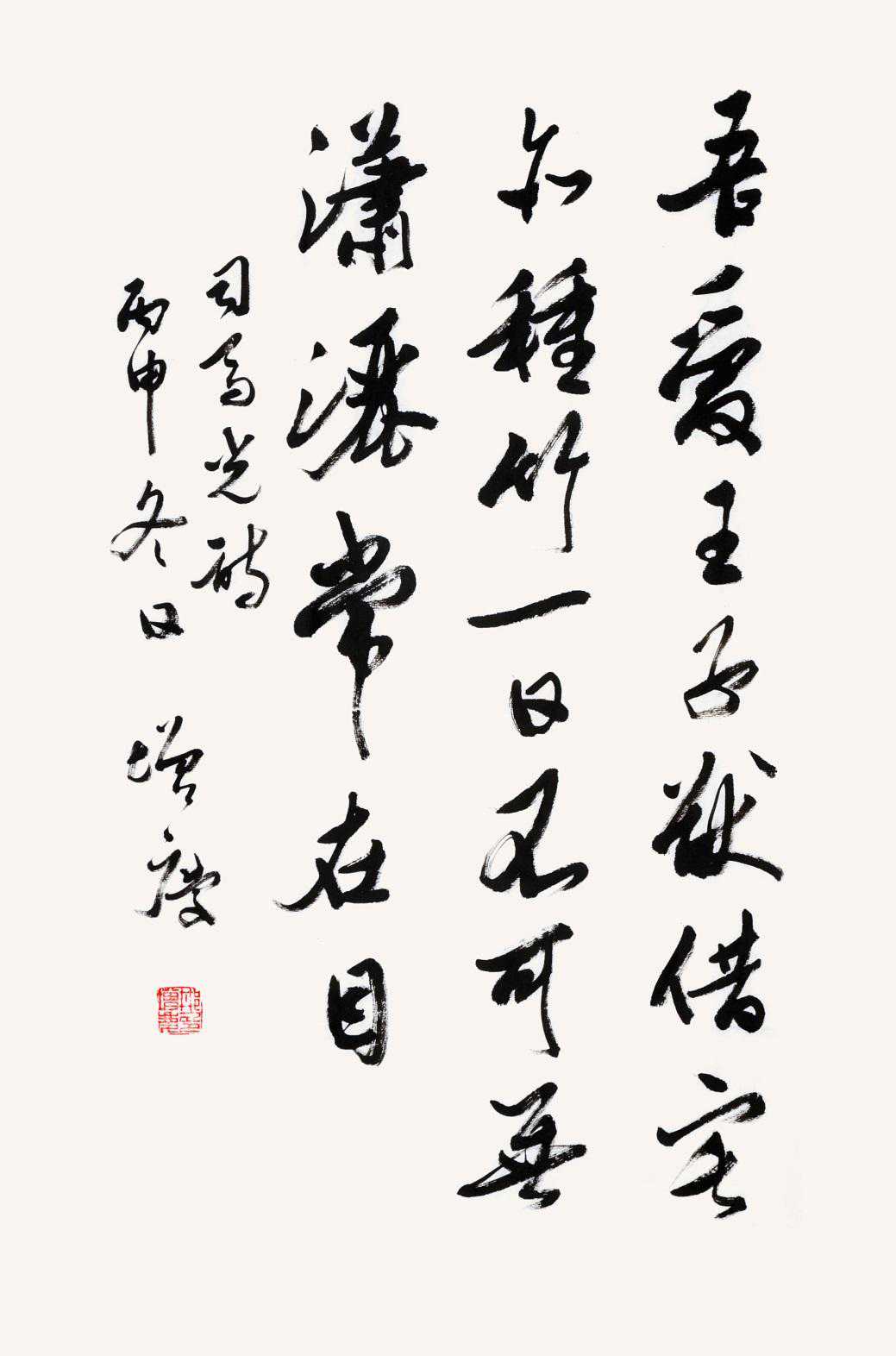 后来,为了丰富自己的知识,吸取多方面的营养,他还在1980年报考了山东师范大学中文系面向社会招收的第一批夜大生,并于1983年以优异成绩毕业。书法学习与文学修养、文化素质并进,让他的书法慢慢脱颖而出。因为在这个过程中,他的视野越来越开阔,眼界也越来越高。他既看到了书体形式和章法技巧,更看到了书法传统中的丰富意趣、文化蕴涵和人格与精神力量,认识到了书法抒情、言志、创新、求变的内在规律。他慢慢知道,手中的那支笔,在提按使转之间,不仅是点线的纵横变化,更是个人情致的尽情表达。一篇《兰亭》、一篇《祭侄文稿》、一篇《黄州寒食帖》,也是一部《离骚》、一部《史记》、一部《红楼》。