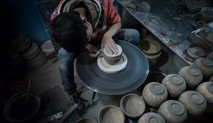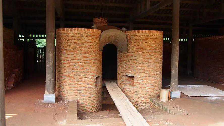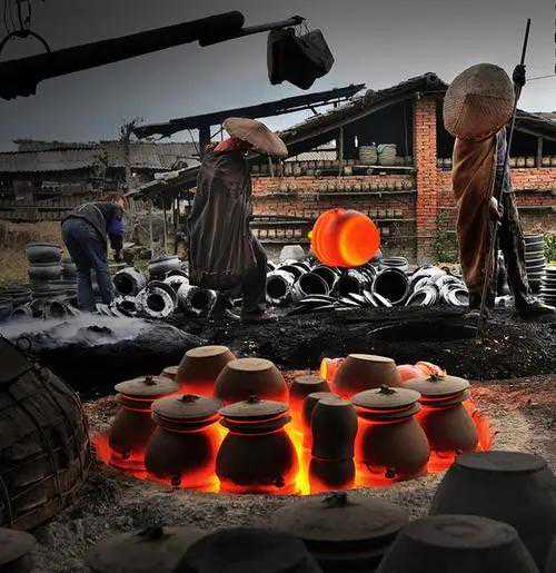 接下来就是“土与火”的混合,即“烤”。烘干后的坯胎放在一种叫做“馒头窑”的窑炉里,通过鼓风加热,将炉膛内部的温度维持在1200~1300摄氏度之间,然后关闭炉子,让高温的炉子与窑里的有机物质相结合,发生物理和化学作用,让材料发挥出不同的作用。