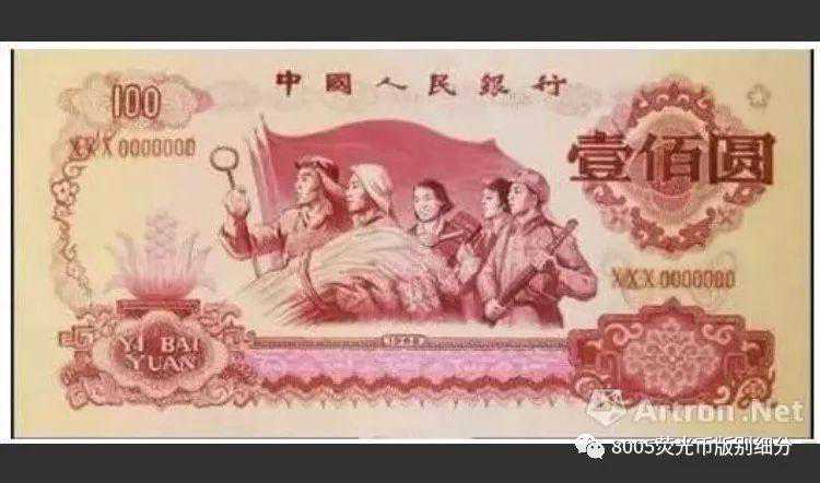 这张整体通红的百元钞是1969年闹文革的时候设计出来的,据说是要加入三版币的,但是被淘汰了,只是作为样稿被完整保存了下来。