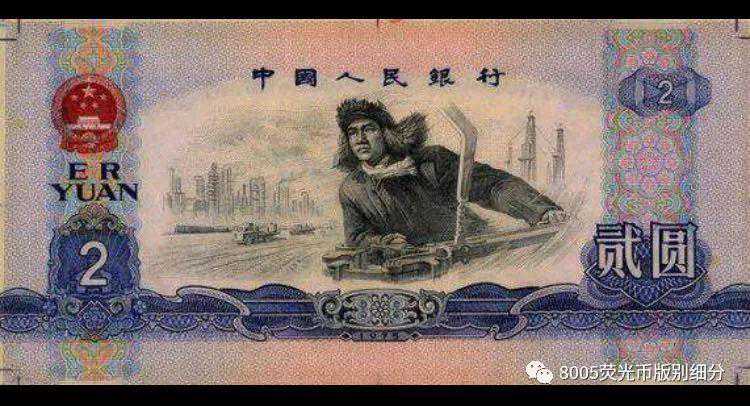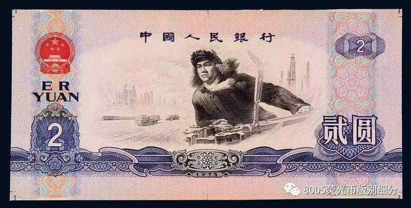 1975年印制的2元纸钞,其设计风格以纸钞是同时期,正面是文革时候的英雄模范王进喜,而背面则是正在建设中的大庆油田。