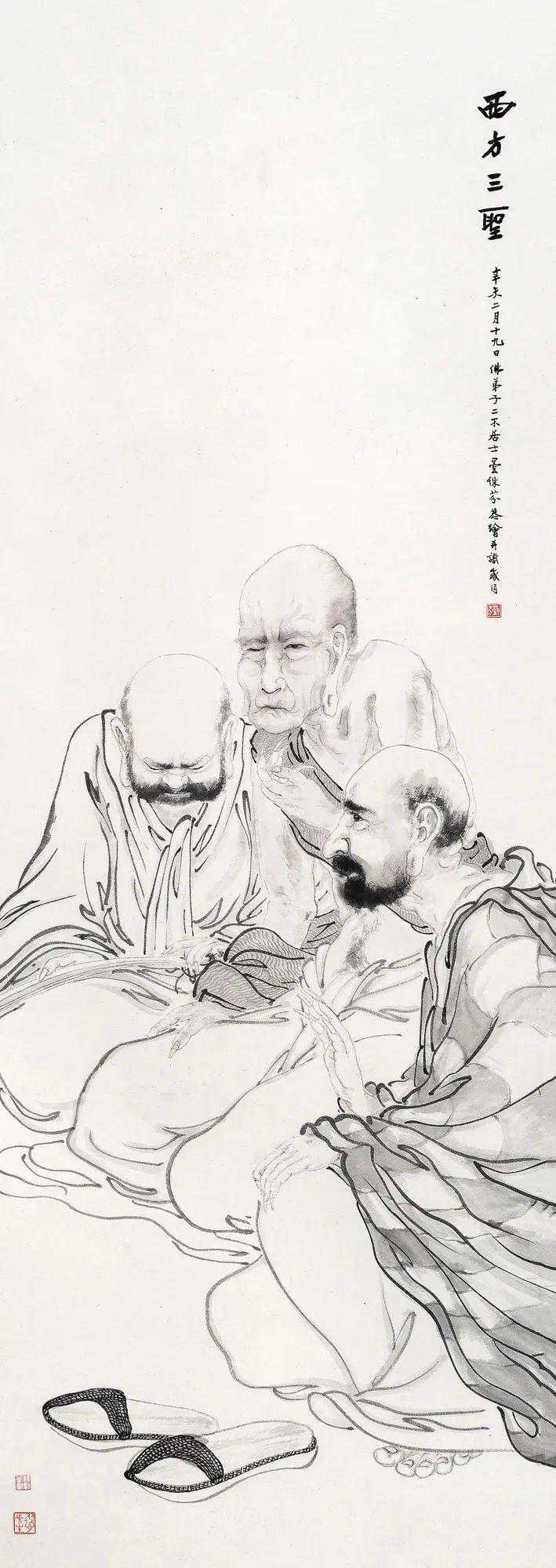 邓芬人物画既延续传统题材,又见时代因素。尤其笔下佛像,时而挠头骚耳、时而携书弃履,表情多怪,十分富有生活气息。这或许与邓芬长期往来粤港,在香港多见到印度“阿差”有关。