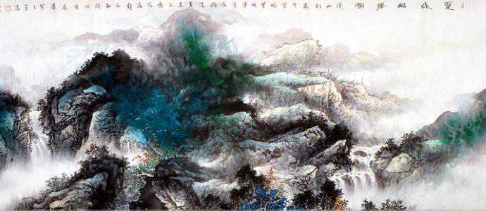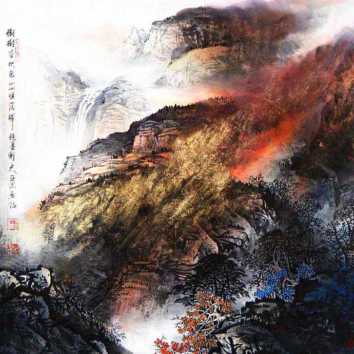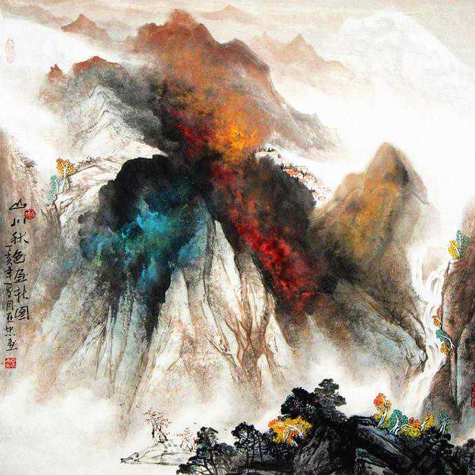 丁亚忠的山水画主要是以祖国大好河山为题材,在技法上吸取张大千、刘海粟、宋文治、黎雄才、白雪石、傅抱石等名家不同风格的艺术精华,在大自然的造化下独具风格、自成一家。丁亚忠用笔刚劲、墨迹豪放、色彩浓烈、气势撼人。作品中既有八大山人的豪放、石涛的野逸,也有黎雄才、张大千的苍润、黄宾虹的厚重、傅抱石的潇洒以及潘天寿的霸气。丁亚忠之画风,具有传统气息,却不为传统所束,广临诸家,博采众长。渐年又遍阅画理史论,以辅蒙养,旅登五岳,临黄山、游三峡、泛五湖,多处写生,搜尽奇峰,历练学养、纳古收今、中西合璧、独具匠心,尤以泼墨泼彩胜出,更是艳丽中透古雅,自得天然气韵,为之一绝。