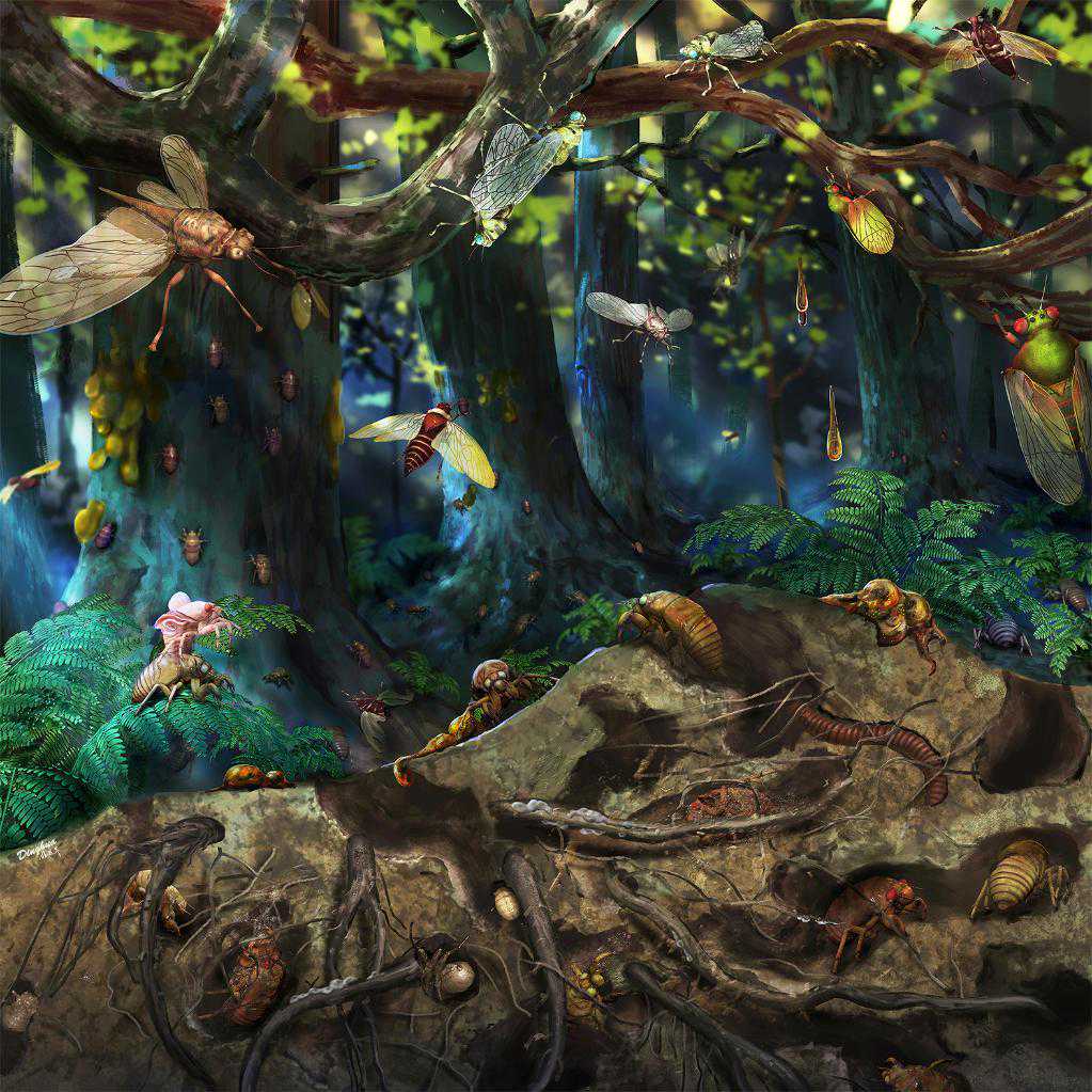 中生代森林中蝉的生活生态场景示意图。(杨定华绘制)