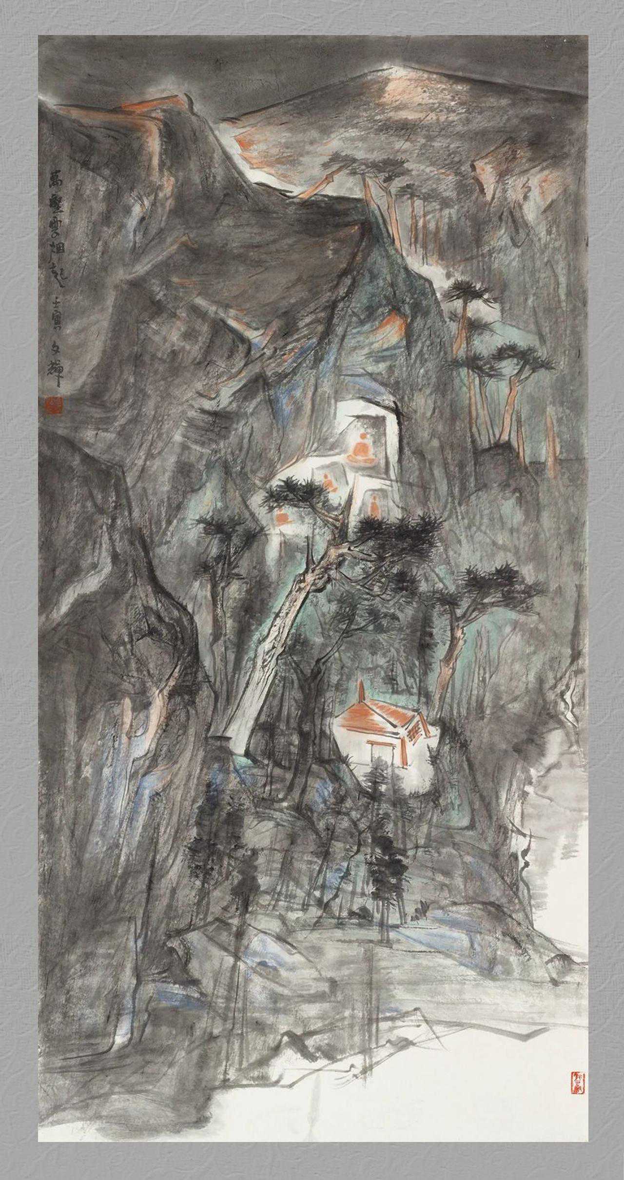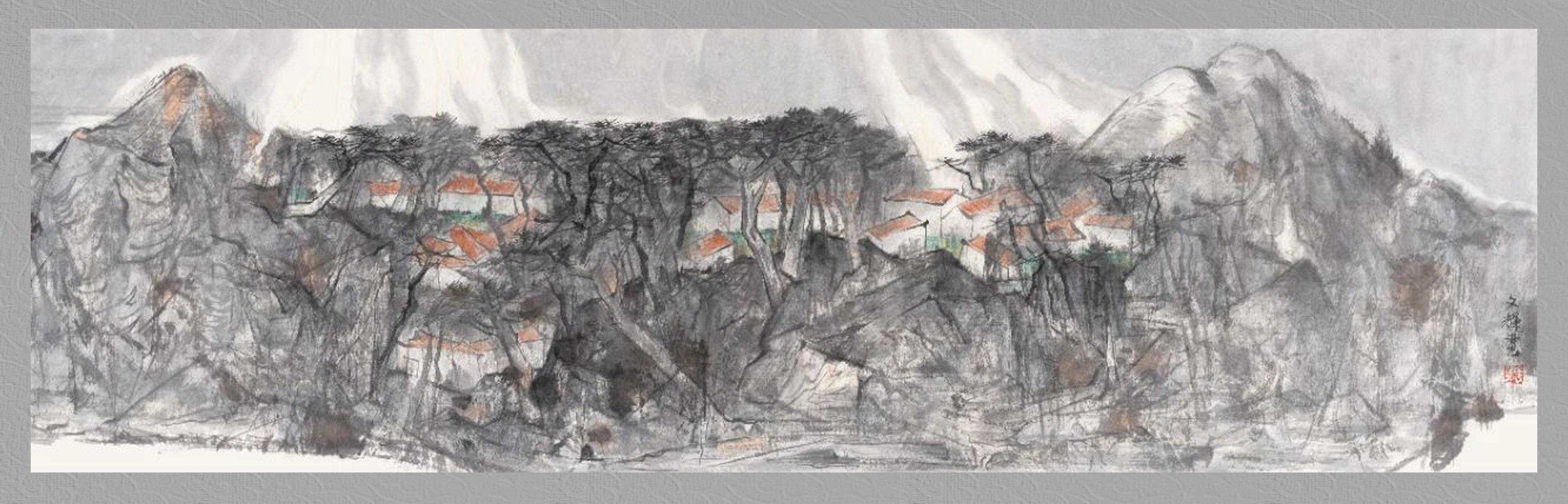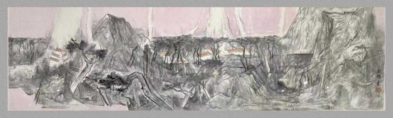 血液中北方人特有的豪放爽直的内质和地域文化的影响,体现在一些大尺幅的作品中,多采取全景式的构图,颇具北宗山水的气势与张力,用笔苍劲、老辣,用墨亦更加地恣意而随性。