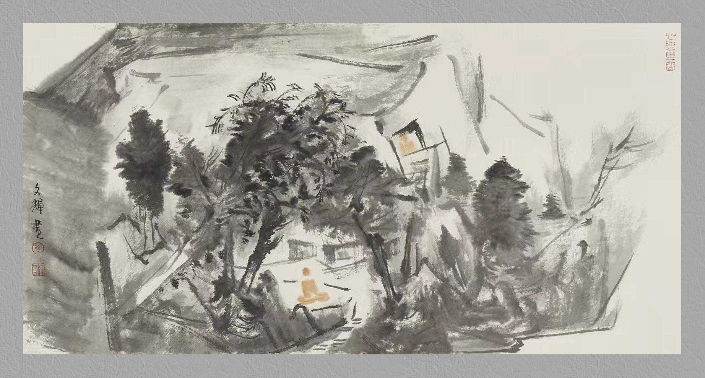 文辉早年取法北宗山水,反复临摹范宽、郭熙的作品,在笔墨上下了很大的功夫,刻苦练习书法且深入地研究中国古代绘画美学理论和古代文学。她勤奋而踏实、谦逊而内敛、不急不燥,多年来徜徉于山水间,常年与青灯素纸为伴,在寂寞中成就了更好的自己。