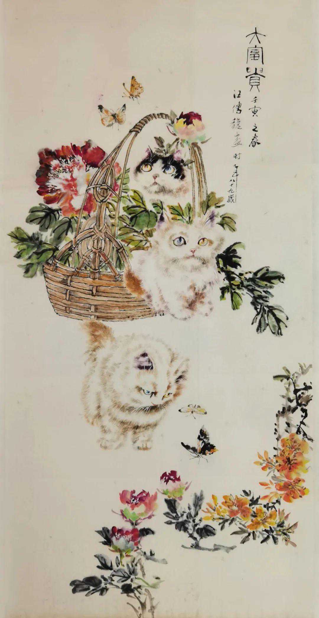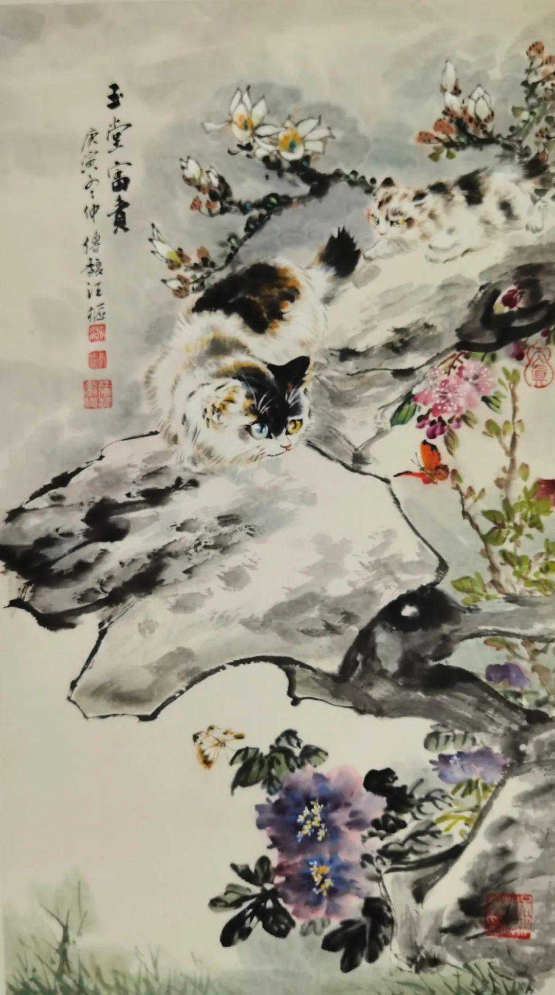 汪传馥,一九三四年生于江苏苏州。现为中国工艺美术学会会员,吴门画派研究会会员,苏州市书画研究会会员;高级工艺美术师。汪自幼随父学画,后拜乡人杨公毅为师,继私淑任伯年。一九六一年受北京画家曹克家指导乃涉猎动物画。主要作品∶《猫戏图》、《春酣》条屏四幅(江苏人民出版社),《樱花盛开》(中日美术交流展),《群猫花蝶》四条屏(古吴轩出版社),1990年与苏州国画院院长张辛稼在台湾高雄举办花鸟画联展。近年来,长卷《百猫图》问世,深得好评,被戏称“猫痴”,作品广为海内外藏家收藏。