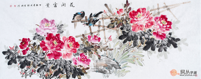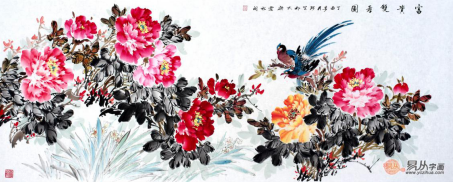 在现代的家庭挂画中,牡丹是一个热门题材。古往今来的人们一直把牡丹国画当作家居装饰挂画的首选,不仅仅是因为它那姹紫嫣红的花色、雍容华贵的气质,更在于它是集颜值、寓意、风水于一身的中国传统吉祥花卉。