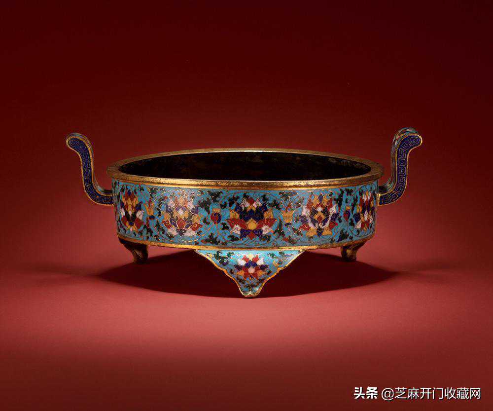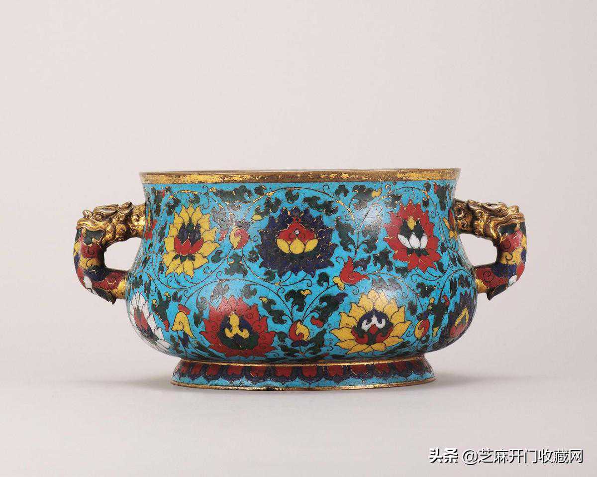 明宣德铜胎掐丝珐琅缠枝莲纹龙耳炉,尺寸:宽21厘米,成交价:RMB4,255,000