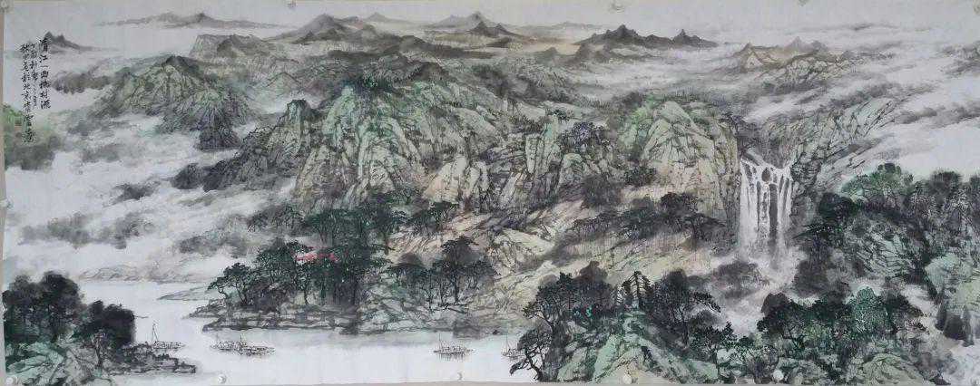 狄少英先生用两把利剑劈开了禁锢他灵感的无形山峰,成就了他山水画的“内美”和“新意”的“似与不似”的崇山峻岭。《富春山图》题跋中写道:“江山本如画,内美静中参。人巧夺天工,剪裁青出蓝。”仰望先贤佳作,狄少英先生感慨良多,唯有攀登,方不负丹青,不负自己,更不负凌云之志!