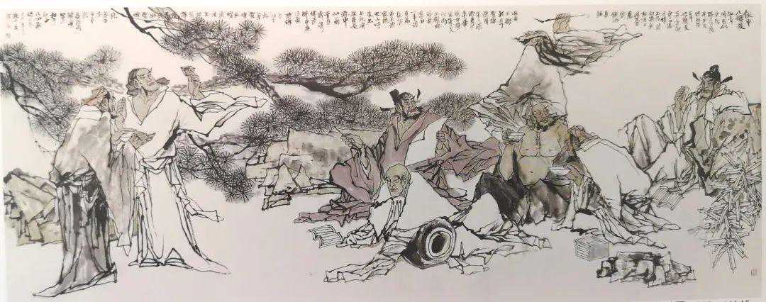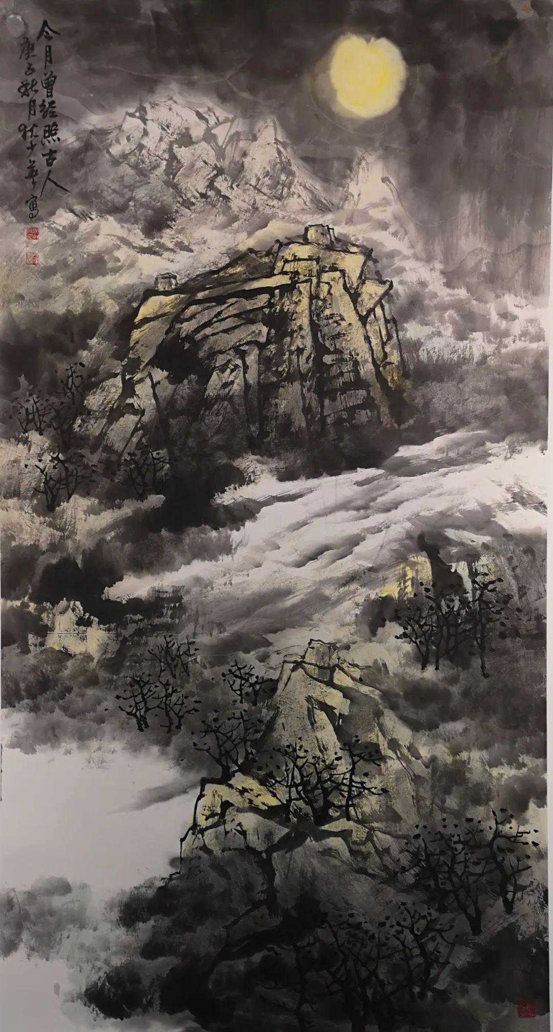 恰是不满足于自己当下的艺术成就,他在创作的深度和广度上苦苦追寻孜孜以求。回想自己的艺术之路,就中国笔墨的深度而言,他多年以来一直注重技法的表现力和准确度,一切专业院校的技法和手段对他而言手到擒来,“舍我其谁”的自信还是有的。“可是技法不是中国画的全部”,怎么才能够冲破自己固有的作品模式藩篱?特别是找到古意中之新奇,新奇中之自我?自我中之气运,气运中之灵动?这个命题犹如一座无法逾越的山峰,横亘在他的面前!思索先贤之法,令他痛苦至极!他无法感受到作品中“由生到熟,由熟到生,再由生到熟”的那种涅槃重生般流畅诗意的生命跳跃?他完全明白这显然已经不是技法可以解决的问题了!他决定减少作品的创作数量和过多的社会活动,静下来读书。他提笔写下七律《修身》一首:微身伏案几寒霜,黄卷青灯夜未央。陋室经年衣带缓,素心寻梦画屏张。诗裁风月蕴娴雅,书写烟霞和乐章。淡泊功名超物外,天真愚朴共清狂。