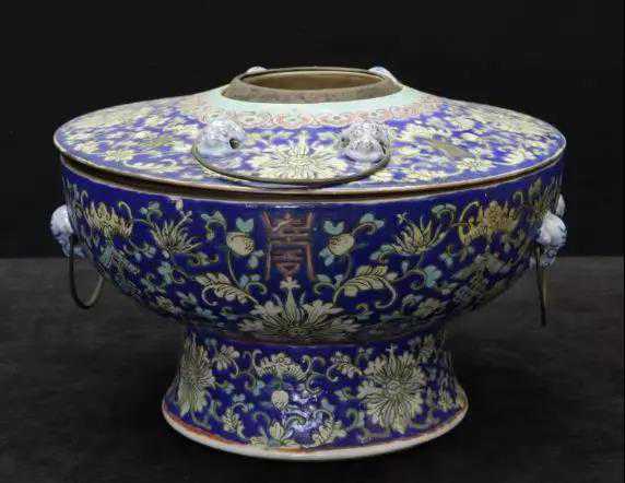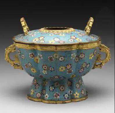清晚期掐丝珐琅团花纹菱花式火锅故宫博物院藏