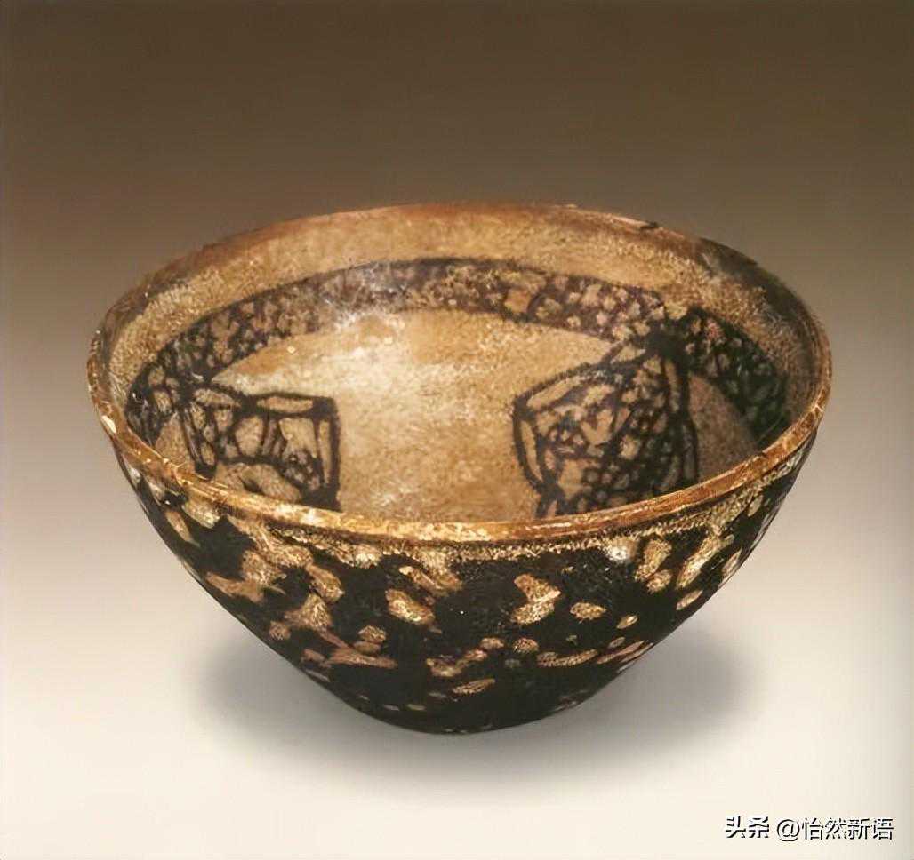 宋·吉州窑黑釉木叶纹碗