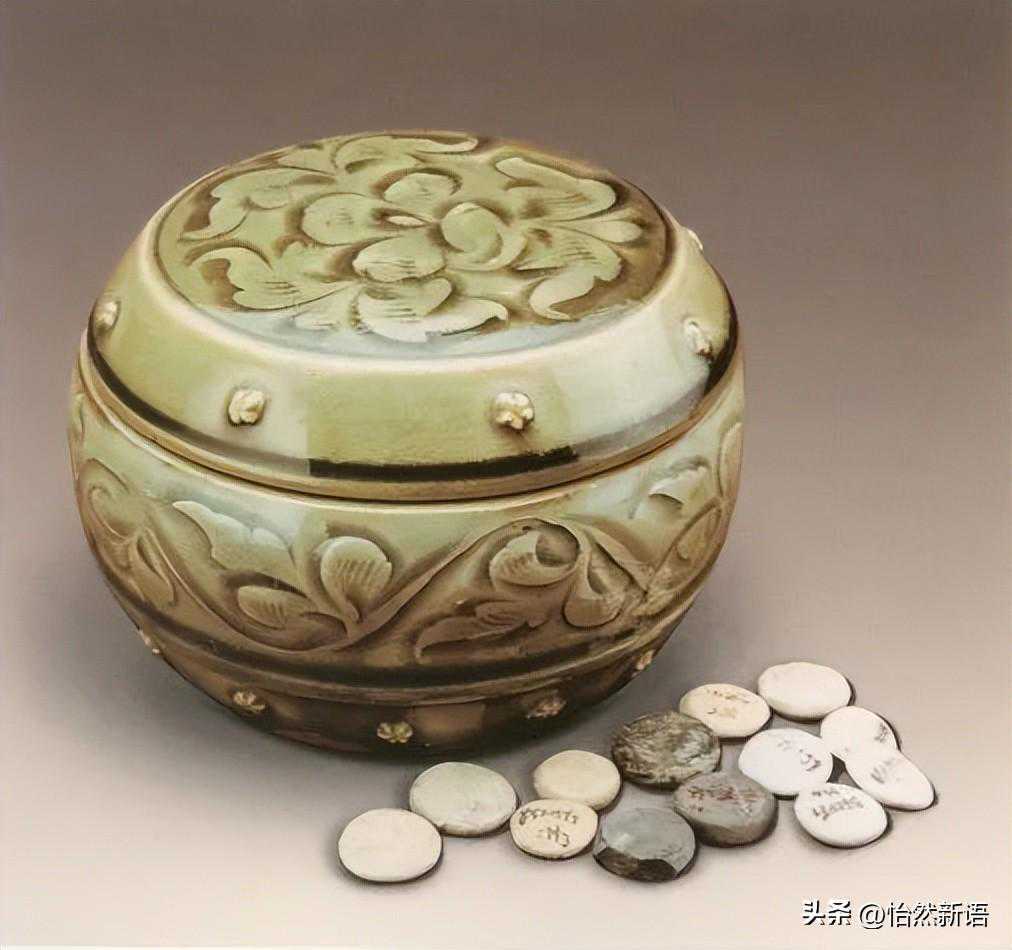 宋·耀州窑青釉刻花牡丹纹围棋子盒