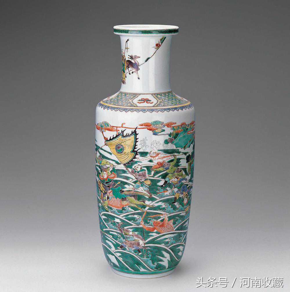 观音瓶和凤尾瓶,口大,都可称为尊。两者都始于康熙,观音瓶很多见,类似于梅瓶加长加粗了颈部。凤尾瓶是大喇叭口,脖子更长更粗,占整体的一半,比例失调。