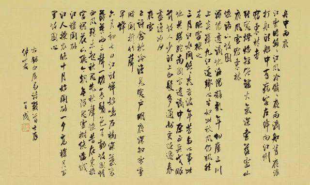 林再成极力深入传统,未定型前对传统资源进行了广泛的撷取,上溯晋唐,下探元明,对各家都有着准确的把握,笔法结字多样,既有凝炼如董其昌者,亦有萧散入杨凝式者。一以贯之的是钢筋铁骨的悠然韵味,豪放与精微兼容并顾,这是一种极其难得的结合。