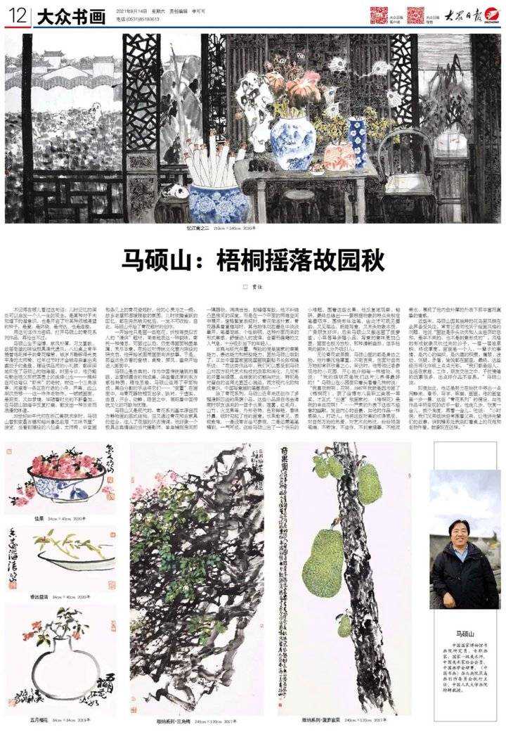 简介马硕山现为中国国家博物馆书画院研究员专职画家,国家一级美术师,中国美术家协会会员,中国画学会理事,《中国书画》杂志画院花鸟画创作委员会执行主任、中国人民大学画院特聘教授。马硕山:梧桐摇落故园秋文/贾佳不记得在哪儿看过这句话:儿时记忆的深处可以启发一个人一生的观念,是某种对于未知埋下的潜意识,也是开启...