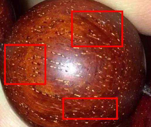 这个是最简单的一个方法,基本上也不会有商家拿这种糊弄客户。但是不代表说没有商家会这样做,所以还是要分享给大家。棕眼是小叶紫檀上的小点点,就是一个坑一个小坑那样的。颜色也有点发黄,有些商家会把这种当作金星的小叶紫檀。