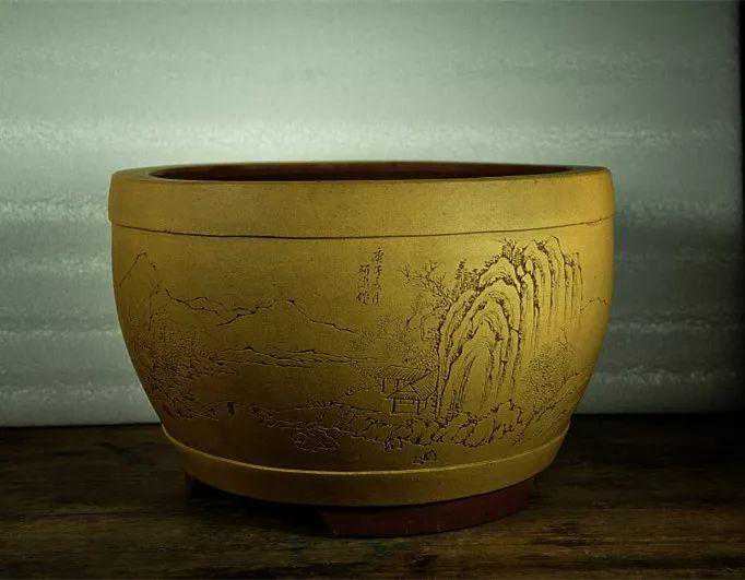1955年他帮毛顺兴书画镌刻的,第一批海金钟大花盆在紫砂界很是震动;1956年进厂后,在大跃进时带过陶刻徒弟。由于他有坚实的陶刻基本功,所以刻的作品一直受到社会的重视,尤其是他刻的正楷长征诗深受青睐。