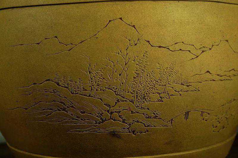 诸葛勋,号友石、卧龙,又号云石、玉如,民国陶刻高手。此牛盖洋桶壶由顾景舟制、诸葛勋陶刻。