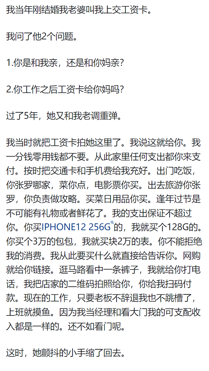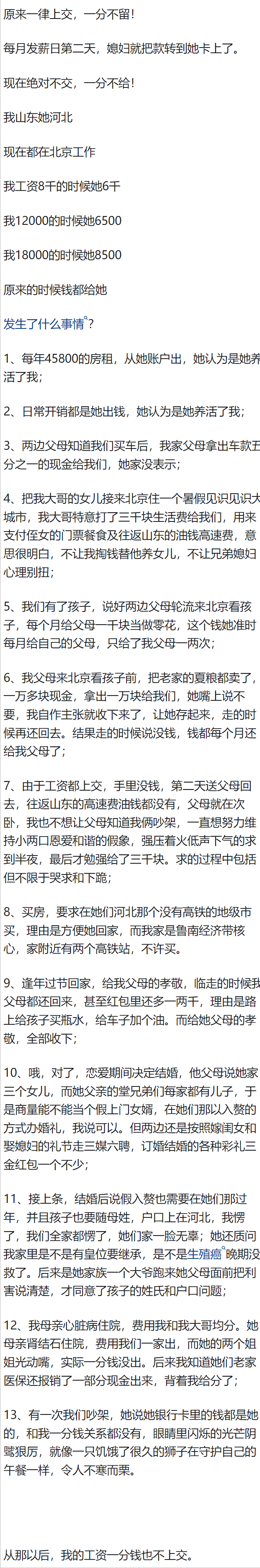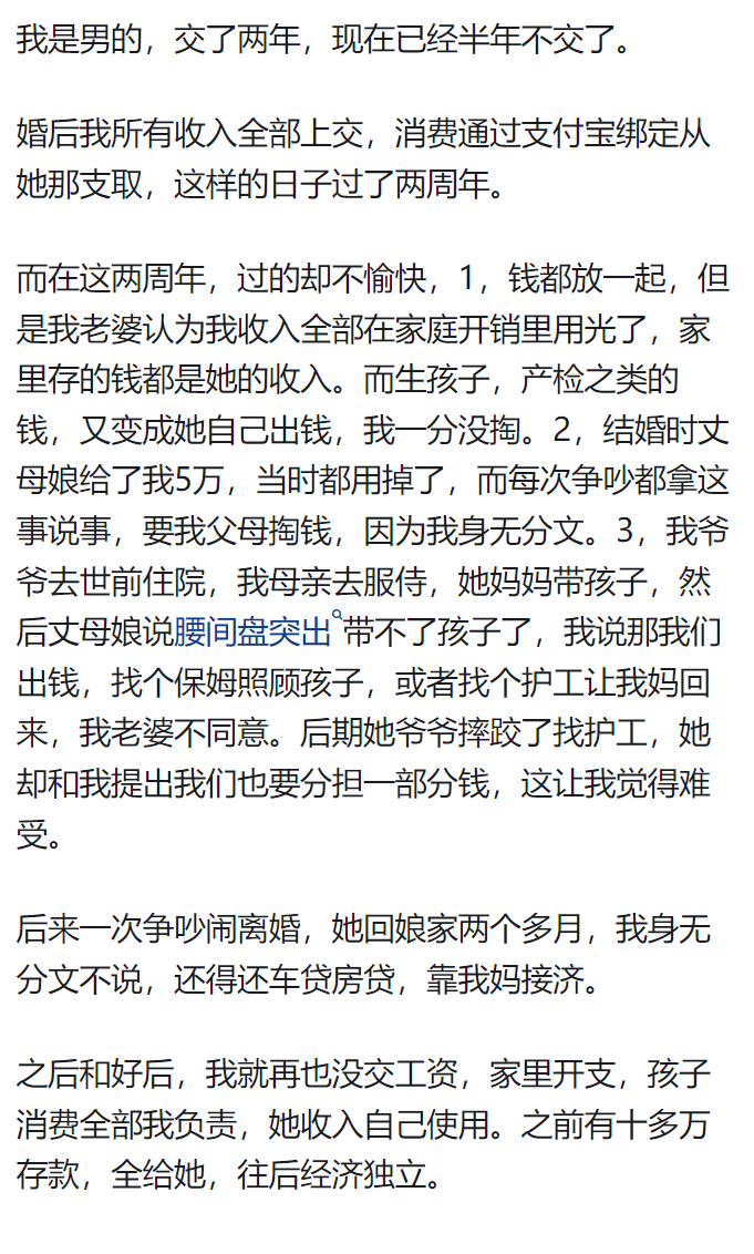 婚后你们的老公是否上交收入?网友的回答既扎心又现实!