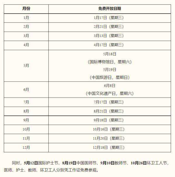 每个月都有1日免费开放