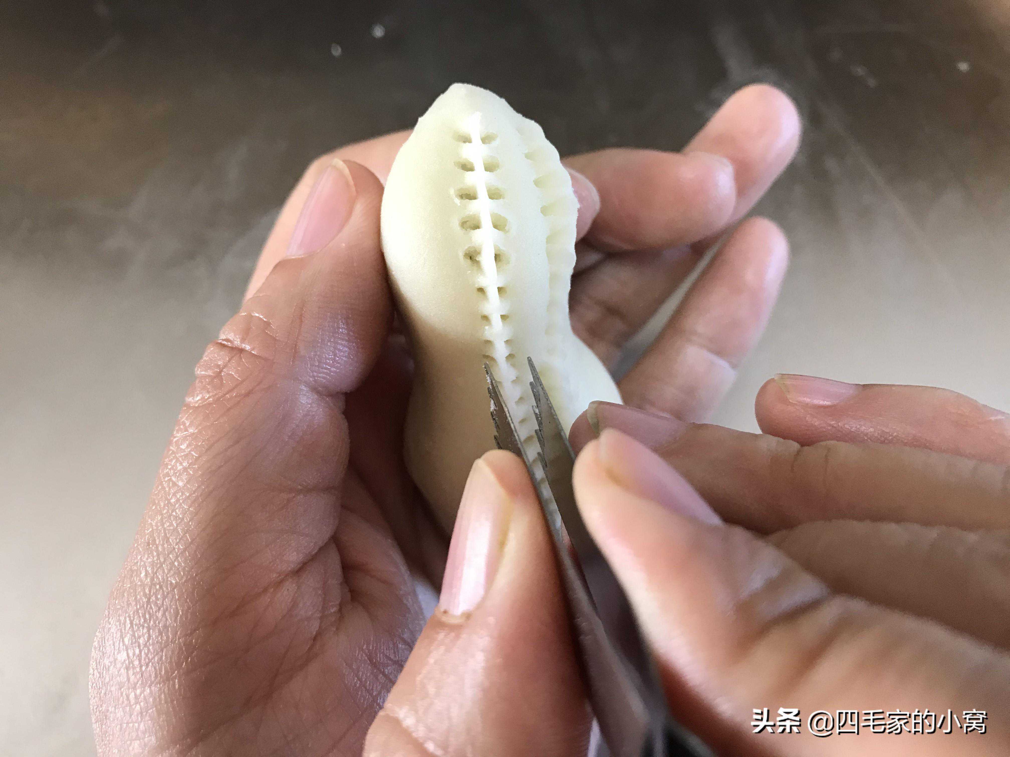 小贴士:这个玫瑰花造型,用夹子夹的时候尽量的向外拉一下面团,这样玫瑰花瓣的感觉就出来了。