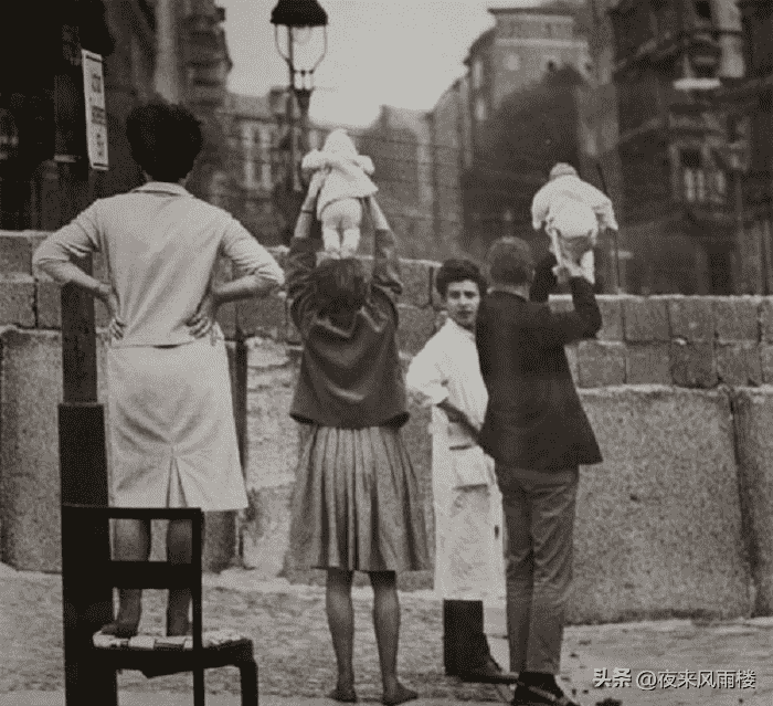 1961年,住在西柏林的人把他们的孩子展示给住在东柏林的祖父母,当时一道柏林墙把德国一分为二,东西柏林的人几乎被完全隔绝开来了,直到1990年柏林墙才被拆除。
