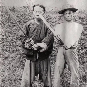 这是清朝的两个官兵,看他们个个手拿砍刀,但是却没有丝毫气质