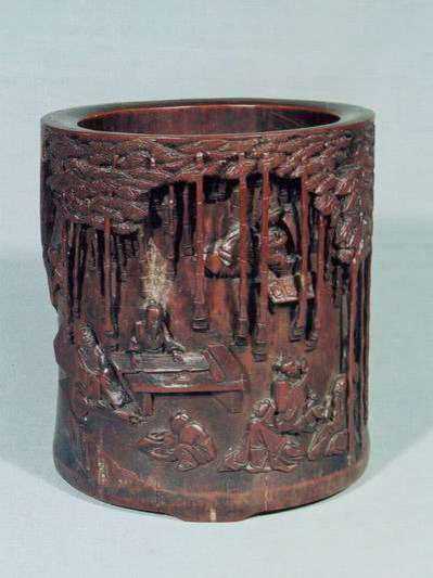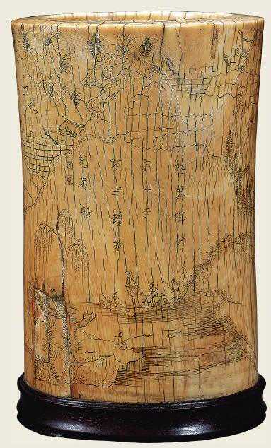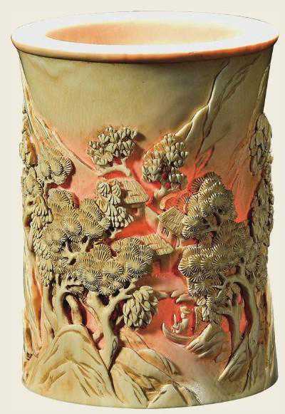笔筒是文房器具之一。为筒状盛笔的器皿,多为直口,直壁,口底相若,形象相比大略,没有大的变革。瓷制笔筒始于明代嘉靖、万积年间,但传世品中极难一见。天启、崇祯时的瓷笔筒出产量较大,以青花为主,纹饰有植物、动物、人物等。其形制为直口,平底,腰微束。器口器足处有暗刻纹饰为崇祯瓷笔筒的典范特性。竹是中国有着惊奇学历意蕴的植物,与“梅、兰、菊”一路被称为“四正人”,和“松、梅”一路则被称为“岁寒三友”,文人尤其崇尚行使竹雕笔筒。木笔筒首要材质有黄花梨、紫檀、鸡翅木、沉喷香木、金丝楠木、红木、乌木、榉木等,以紫檀木、黄花梨木、沉喷香木等为贵。象牙、玉质笔筒,以深雕、镂空和阴刻技法琢制山川人物等纹样,人物与风景般配,纹饰柔美,条理富厚,机关繁密,立体感强。今朝市场较为少见,其代价也很高。玉质笔筒多见于清代,此中白玉笔筒代价最高。作为古董保藏中的“鄙吝”,笔筒着实从未被市场合马虎,频年来在拍卖场上拍出的天价笔筒也层见迭出。