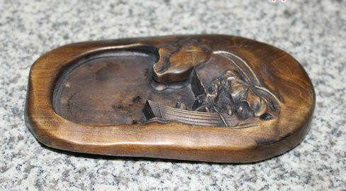 笔船是一种传统工艺品,盛放毛笔的文房用具。以木、牙、玉质材料制作。多作长方形,口沿外撇,圈足,内设笔搁。毛笔横卧在船中笔搁上,一只笔船上最多可放置三四支笔。笔船造型别致,但不便于使用,置笔数量又不可太多,故渐被笔筒所取代。古时伺候笔的文玩很多,诸如笔筒、笔船、笔海等等,但是由于其中一些器物的功能逐渐被替代,因而逐渐消失在人们的眼中,但由于这些文玩除了实用之外,又能摩挲,即使不再被使用,同样可以作为文房摆设。