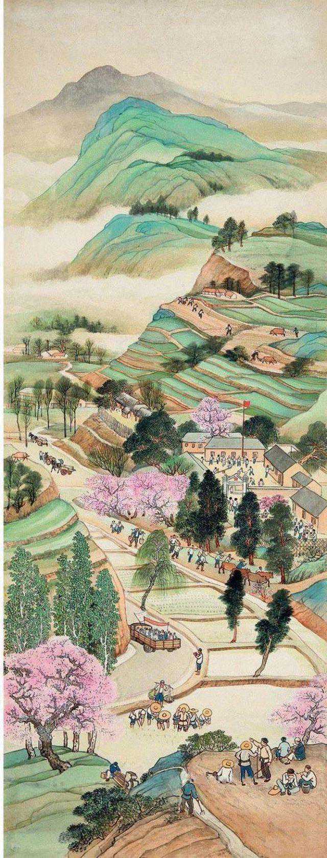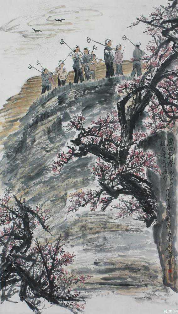 2、赵望云(1906-1977),长安画派奠基人,现代著名国画家。河北束鹿人。早年与王森然、李苦禅等组织吼虹艺术社,1937年创办《抗战画刊》。擅长山水、人物,创作面向生活,画风于质朴厚重中蕴含秀雅,尤长于表现陕北山水和各族人民的劳动生活,为长安画派的开创画家之一。