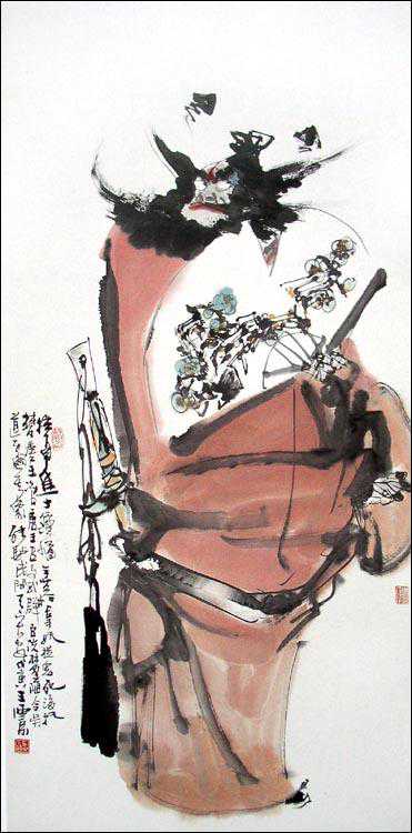 王金岭先生画风沉雄,笔墨恣肆无羁,能于常见题材中独出心裁,具有强烈的西部风格和东方意味。画界人士称他的画是阳春白雪,学者型画家。