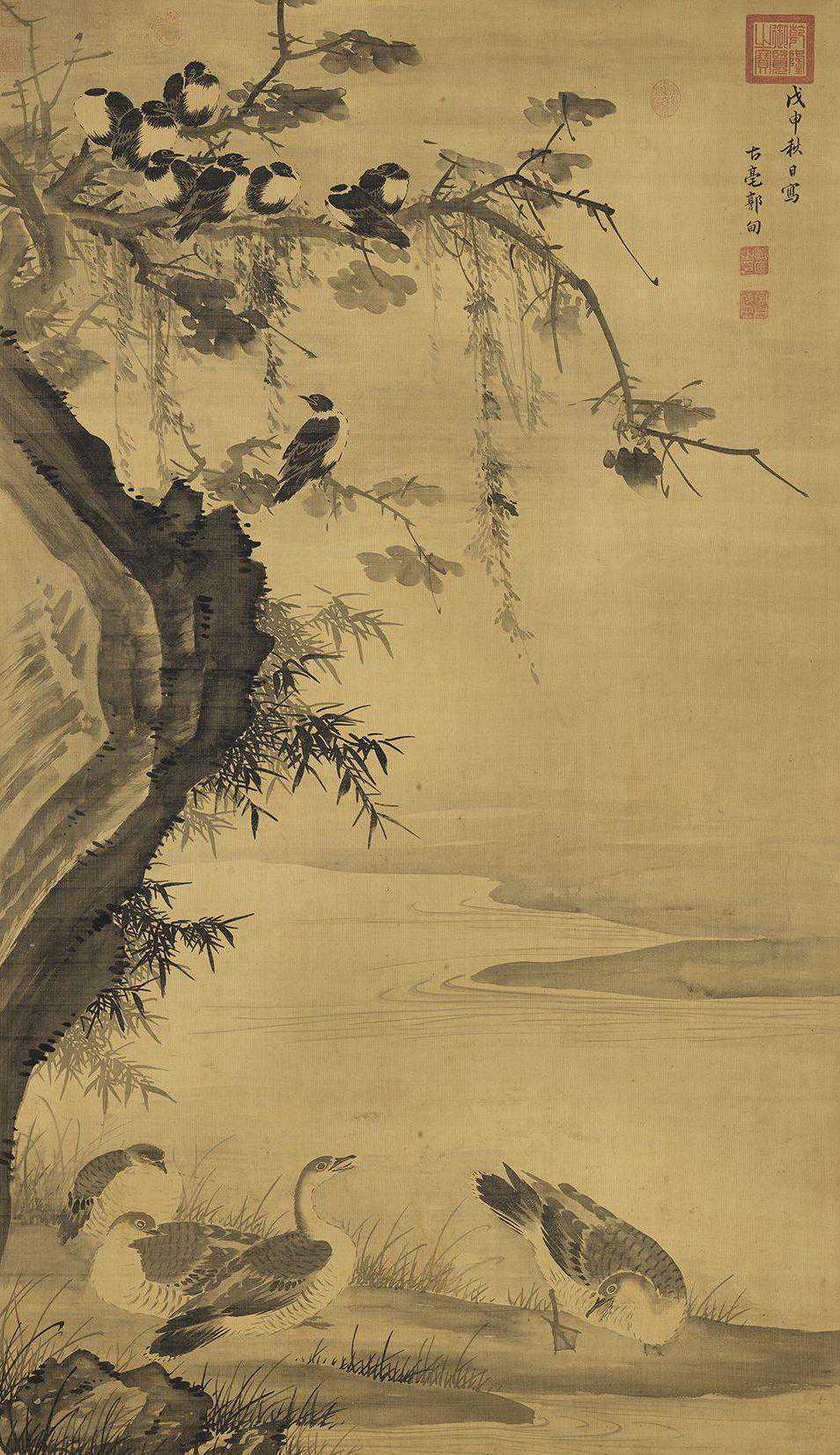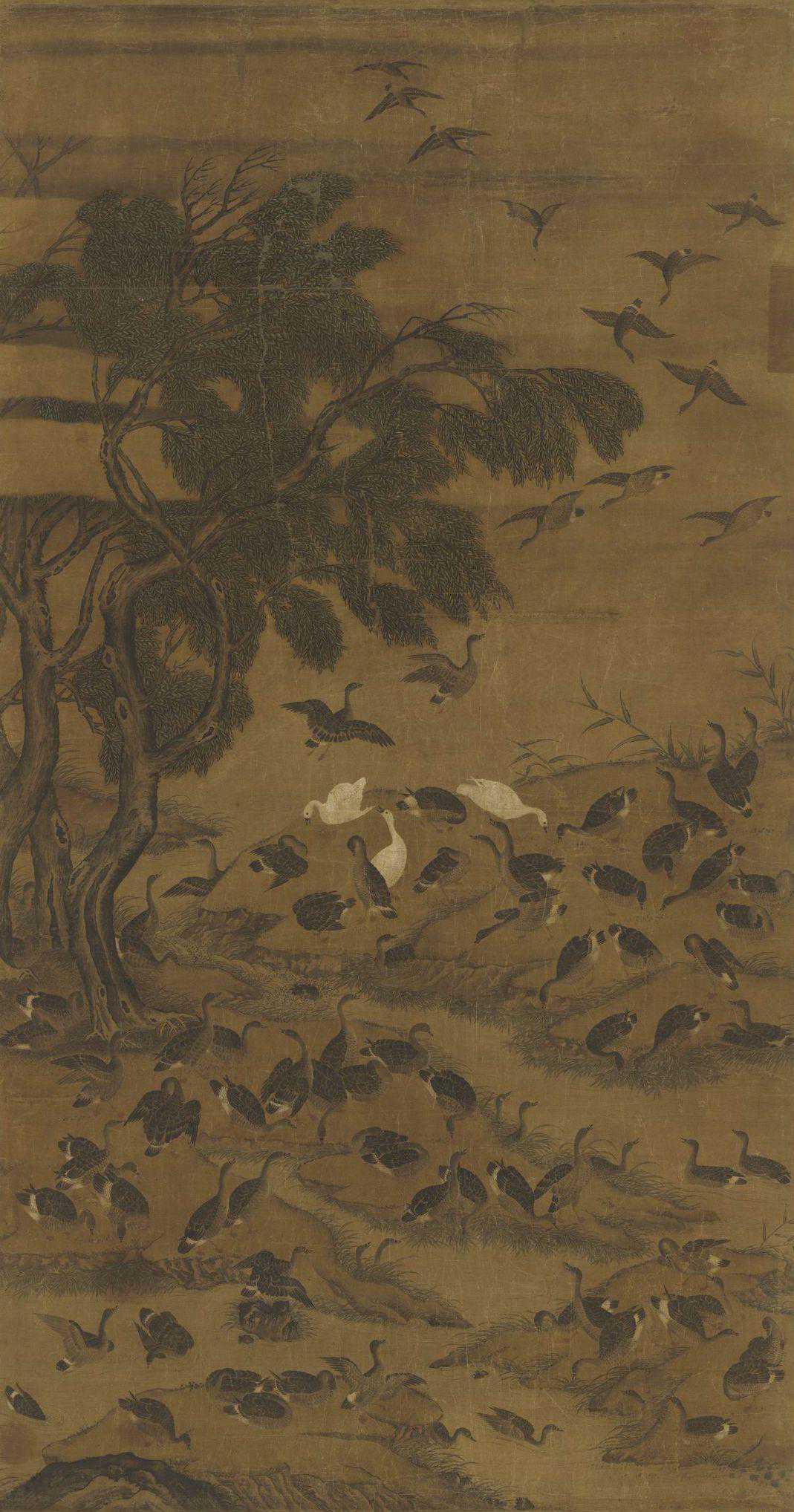 明朱芾芦洲聚雁图轴(局部)台北故宫博物院藏