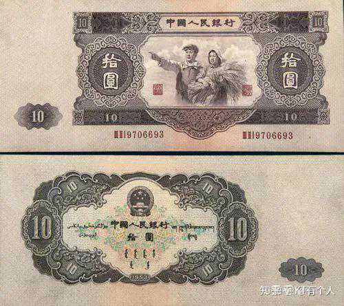当然,咱们不谈这套人民币的其他面值,主要来介绍一下人民币中"巨无霸":第二套人民币十元纸币,它发行于1957年,是由苏联代印的,在收藏界被称为“大黑十”。大黑十的票幅为210mmx85mm,虽然比不上大明宝钞,但也比现在的100元大了不止一个等级。