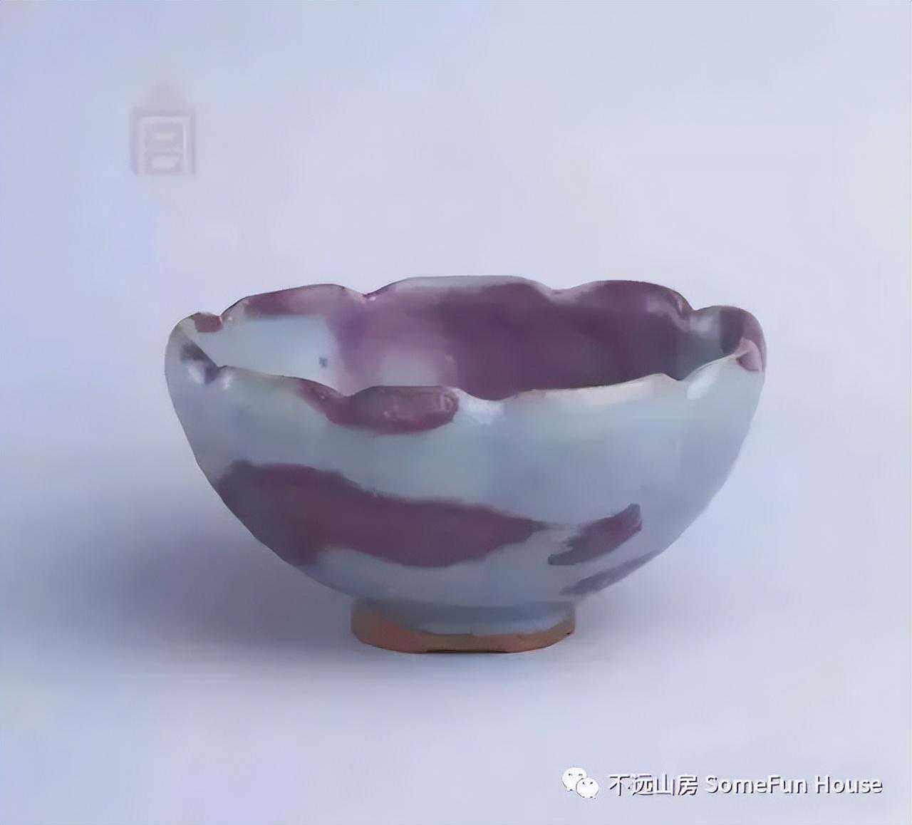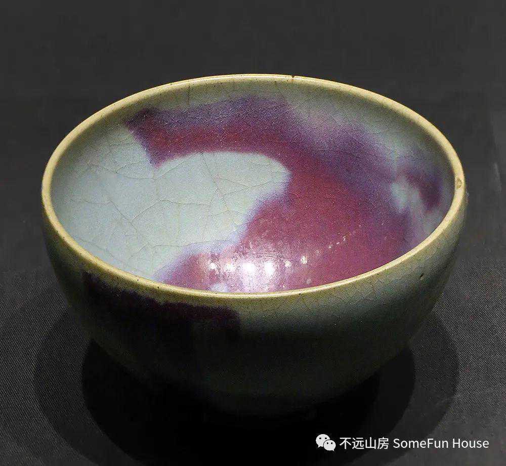 大都会艺术博物馆藏金代钧窑天青釉玫瑰红窑变碗
