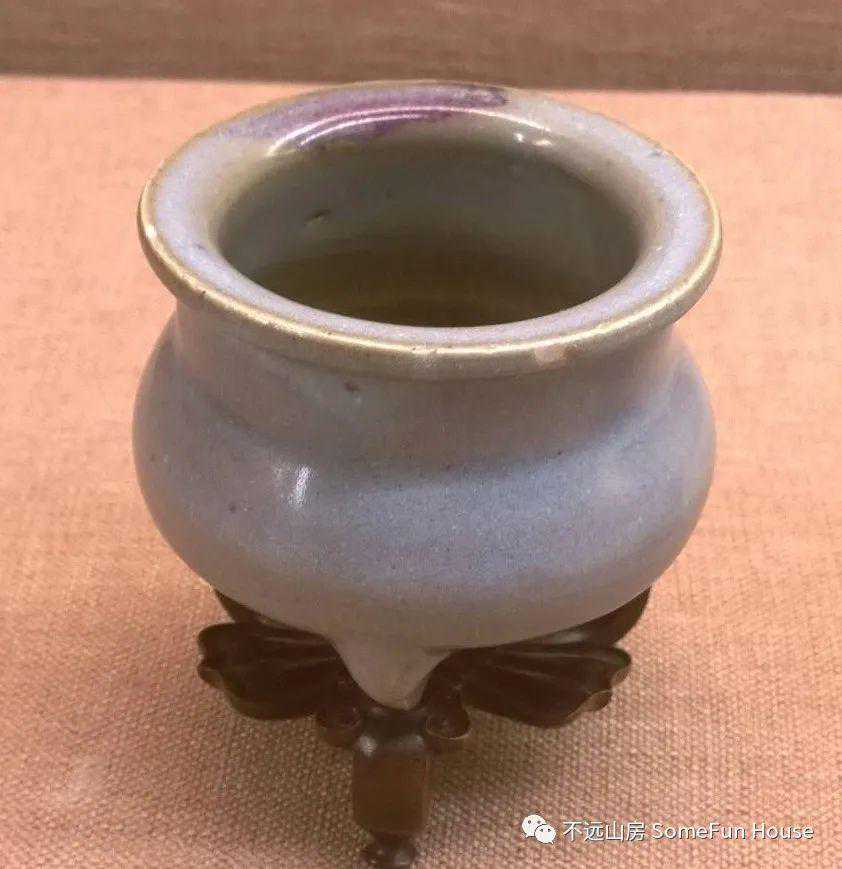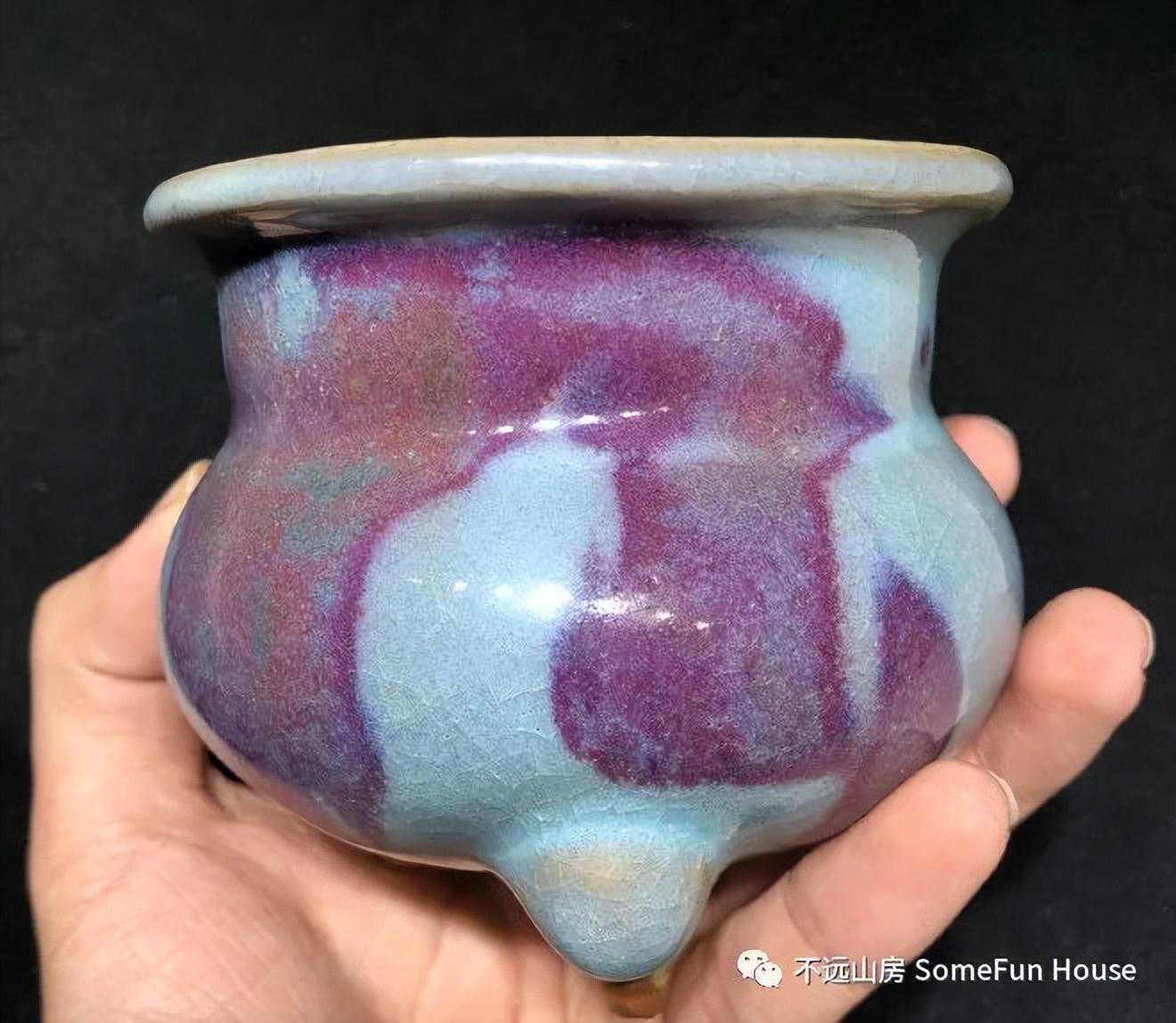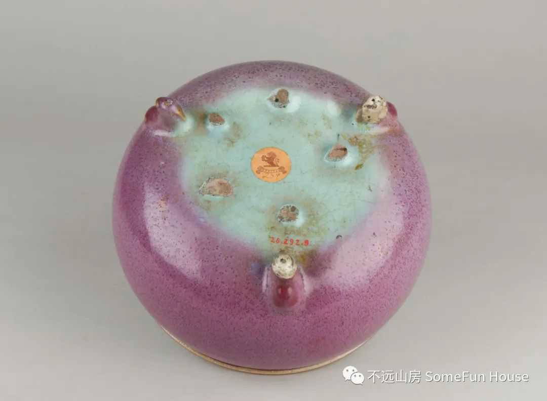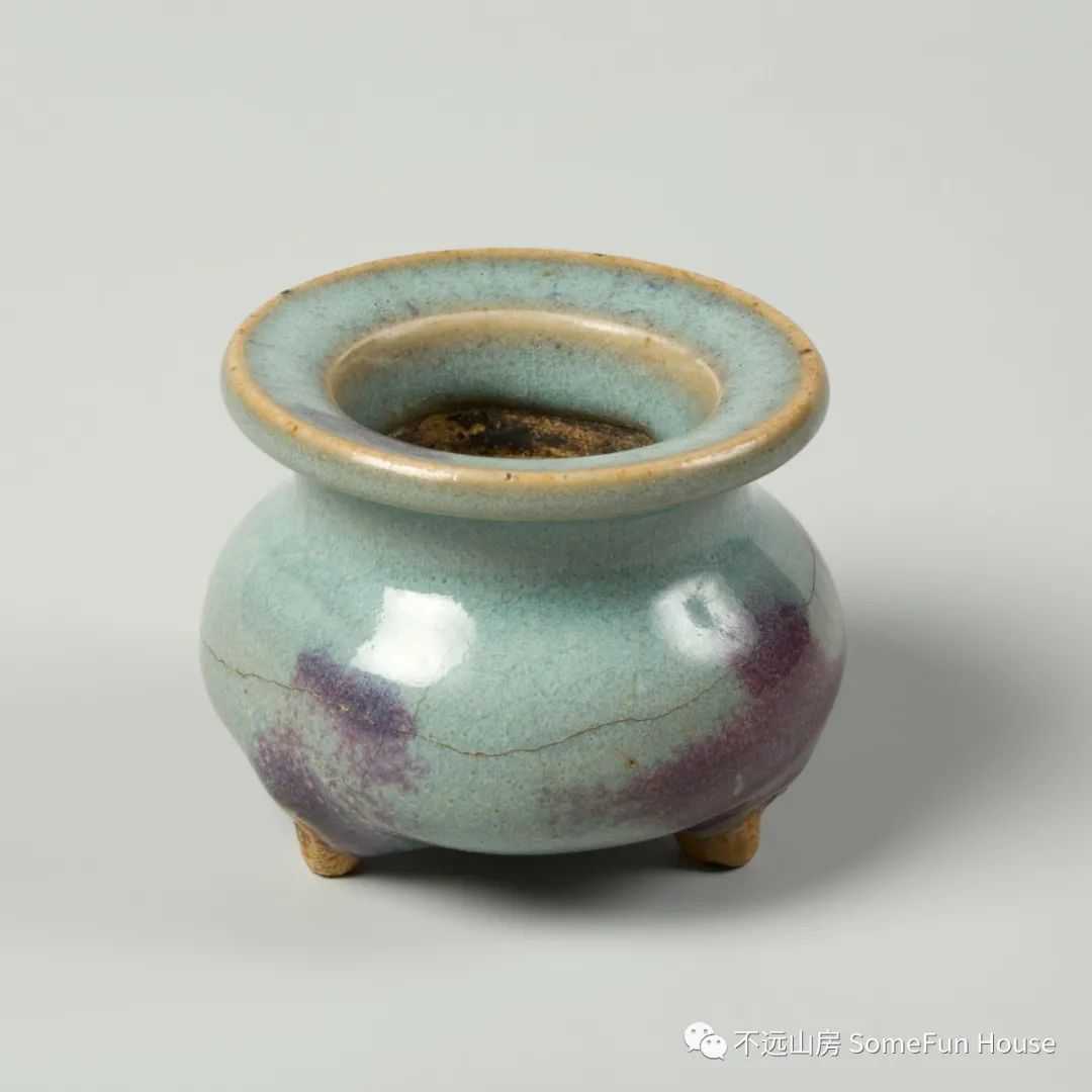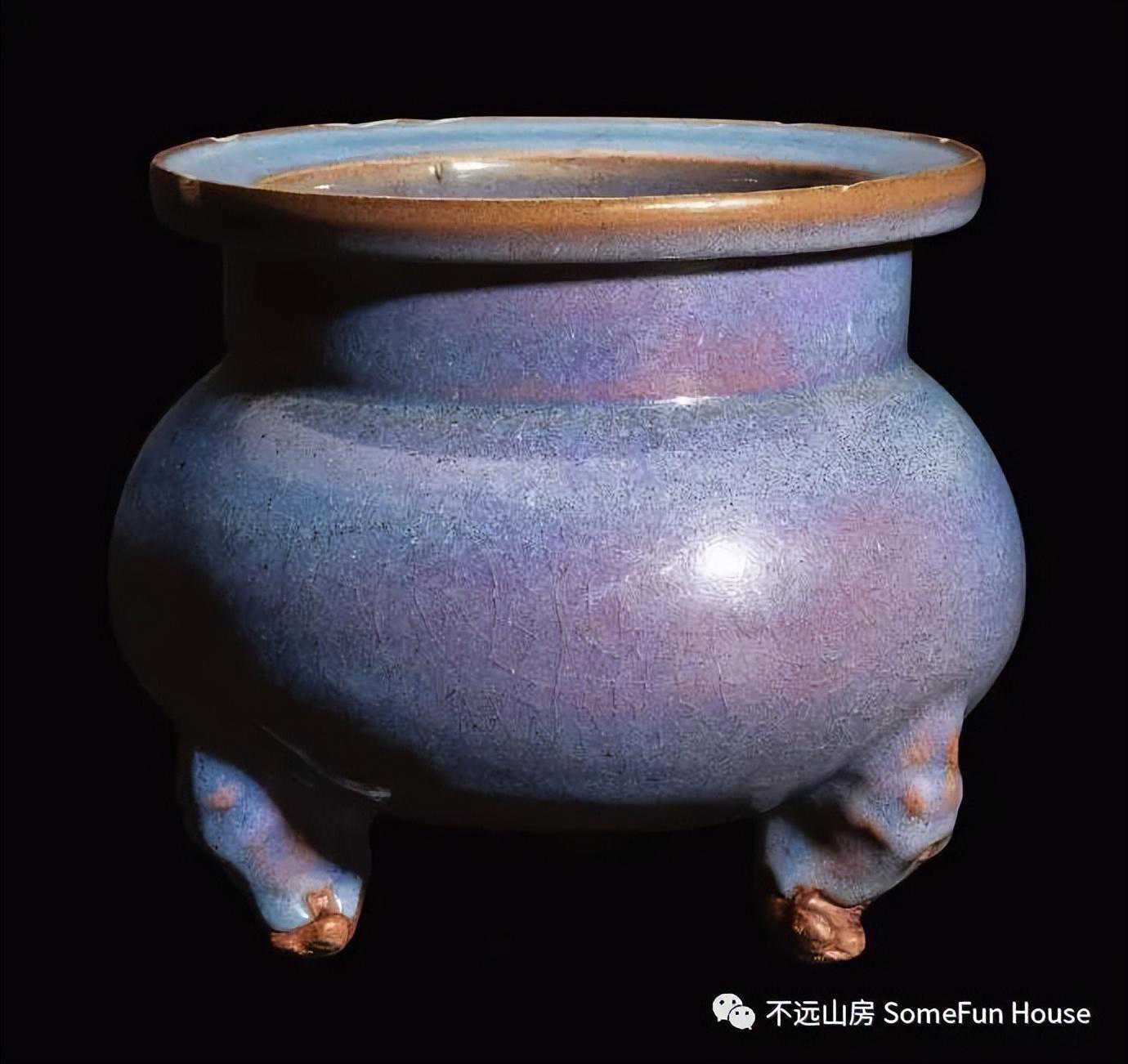 大都会艺术博物馆藏金代钧窑天青釉玫瑰红窑变三足炉