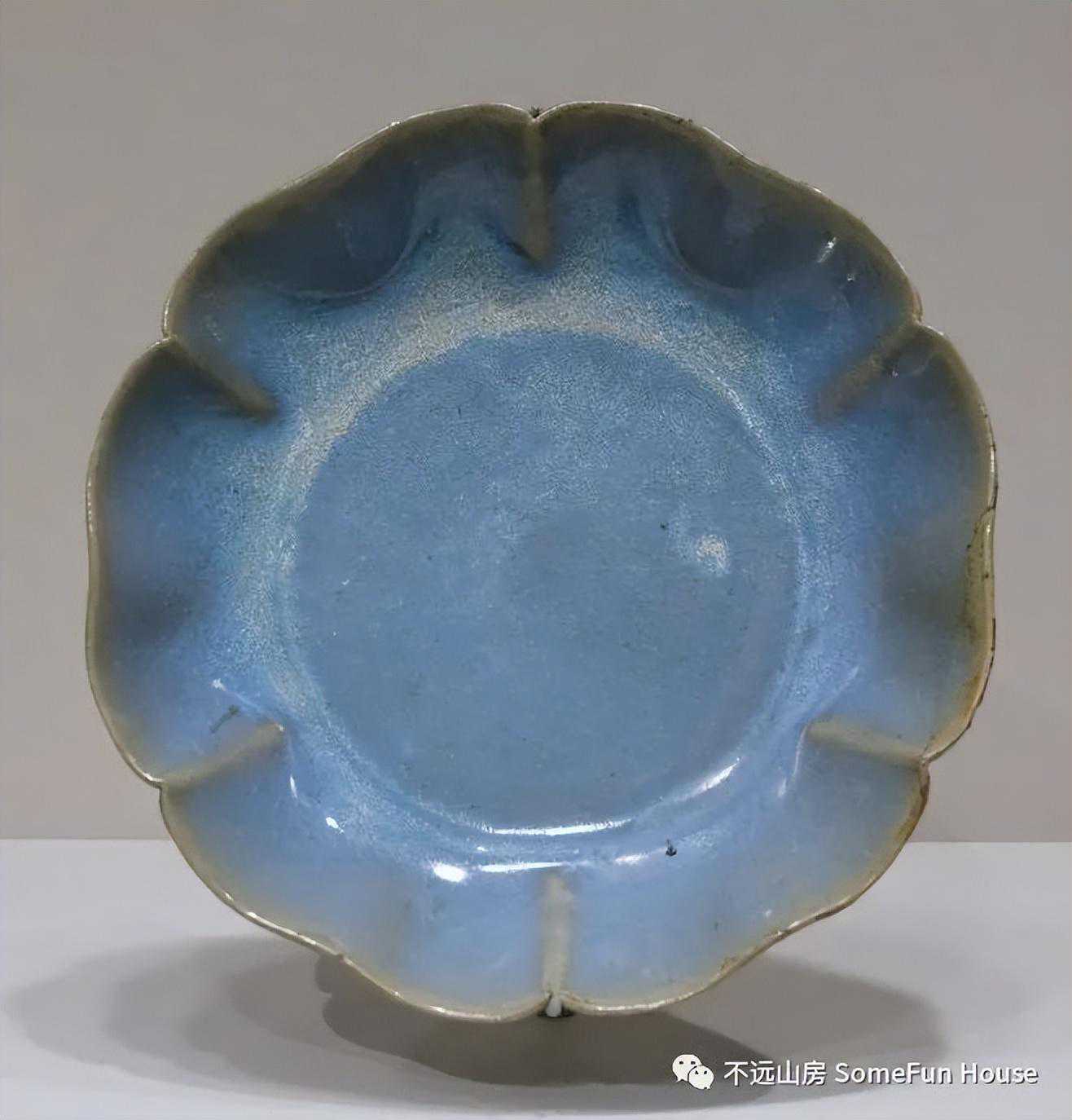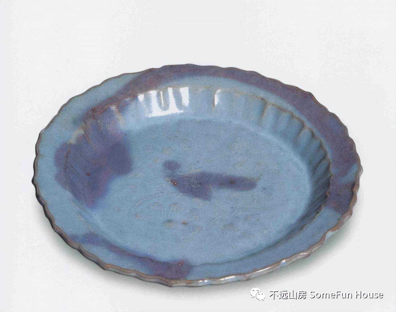 河南博物院藏金代钧窑天蓝釉红斑葵口盘1976年方城县拐河菜园出土。