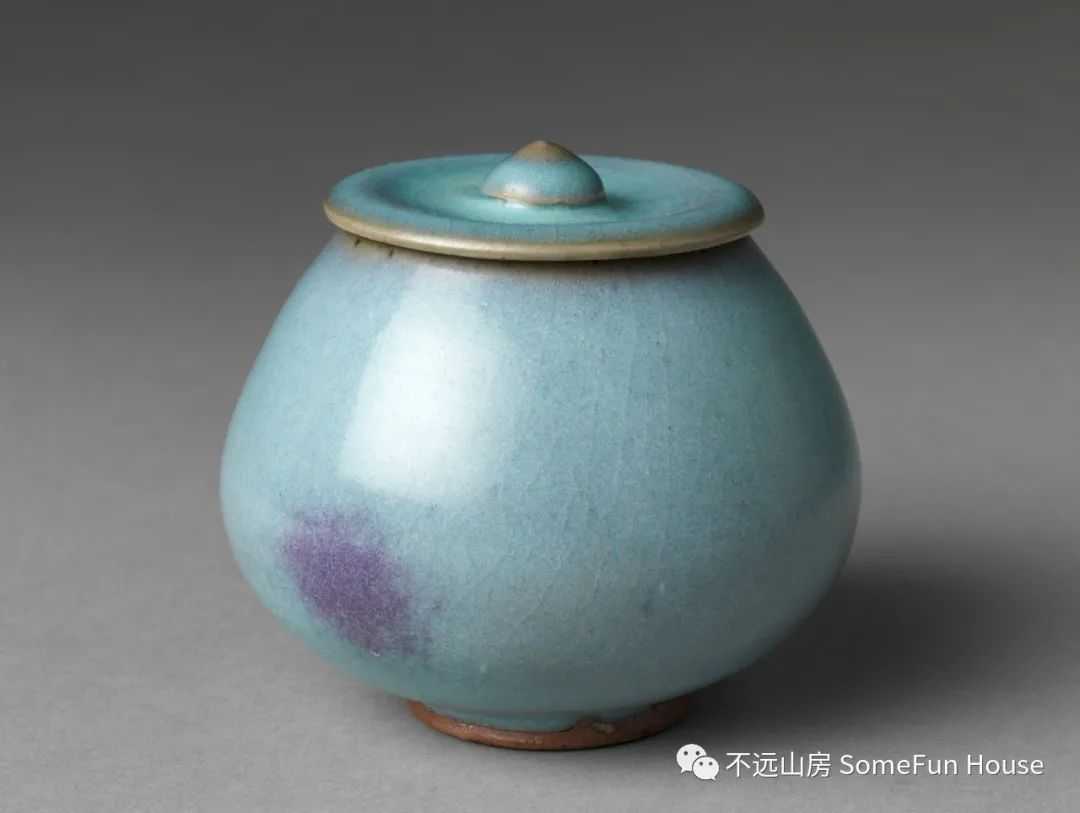 大都会艺术博物馆藏金代钧窑天青釉玫瑰红窑变鸡心盖罐