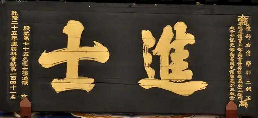 那么真正的进士、举人匾额应该是什么样式的呢?一般按清代规定,进士、举人匾上“进”或“举”字一侧,要写上该科乡试或会试考官姓名,有几个写几个,并且要将考官的官衔一一列出。“士”或“人”字一侧,则要写上中式具体年份,会试第几名,殿试第几名第几甲进士,或乡试第几名等信息,最后书写自己的名字。