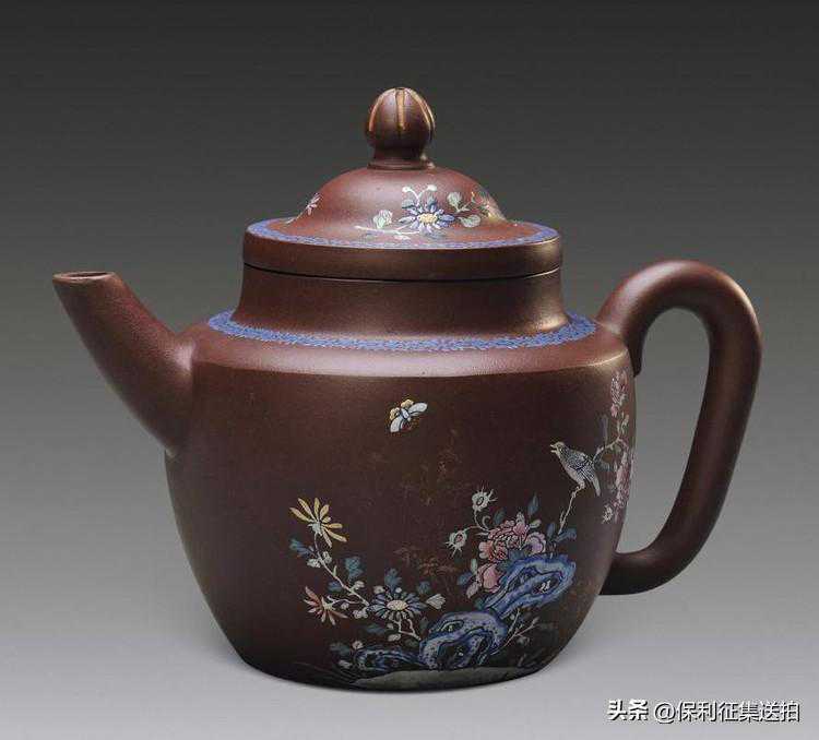 11,清雍正紫泥粉彩描金花鸟纹笠帽壶